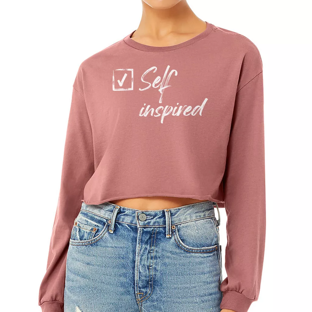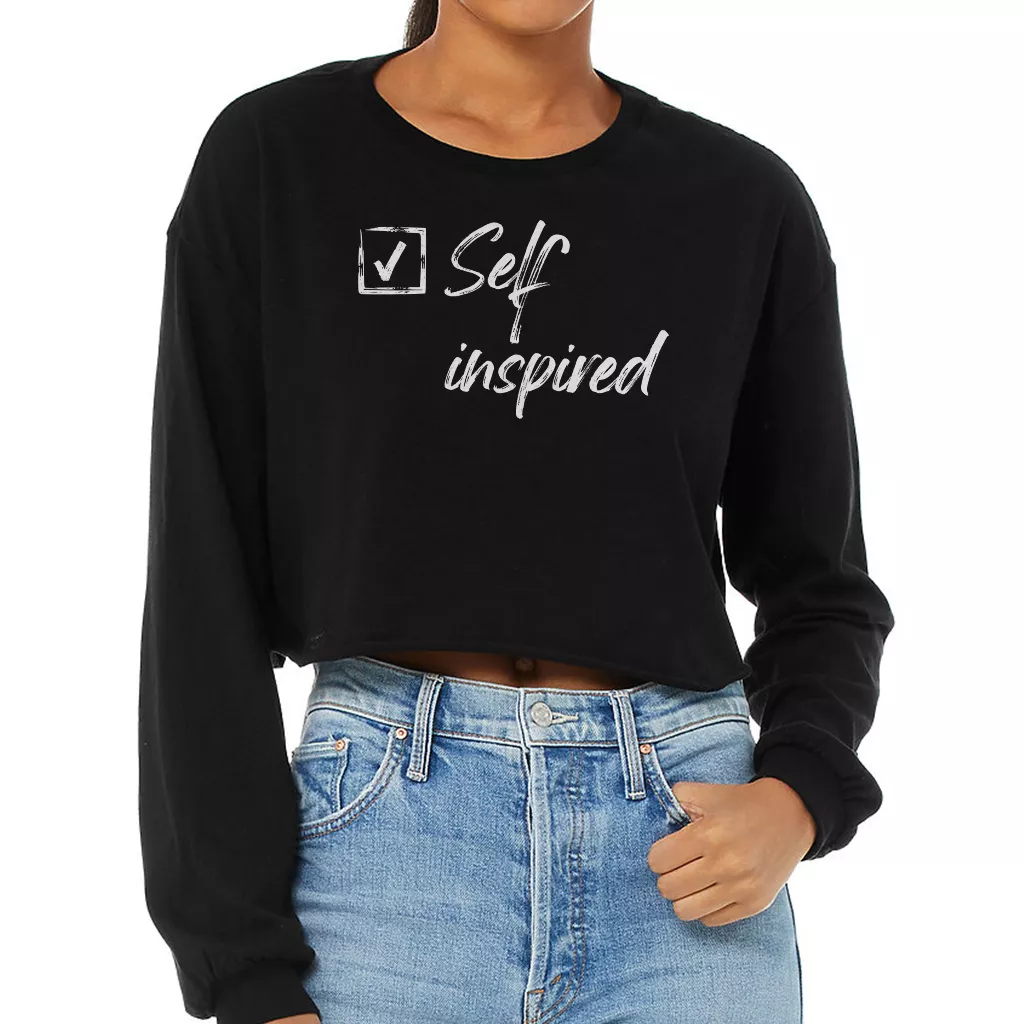 Self Inspired Cropped Long Sleeve Sweatshirt – Inspirational Quote Women’s Crop Top – Success Long Sleeves Pullover