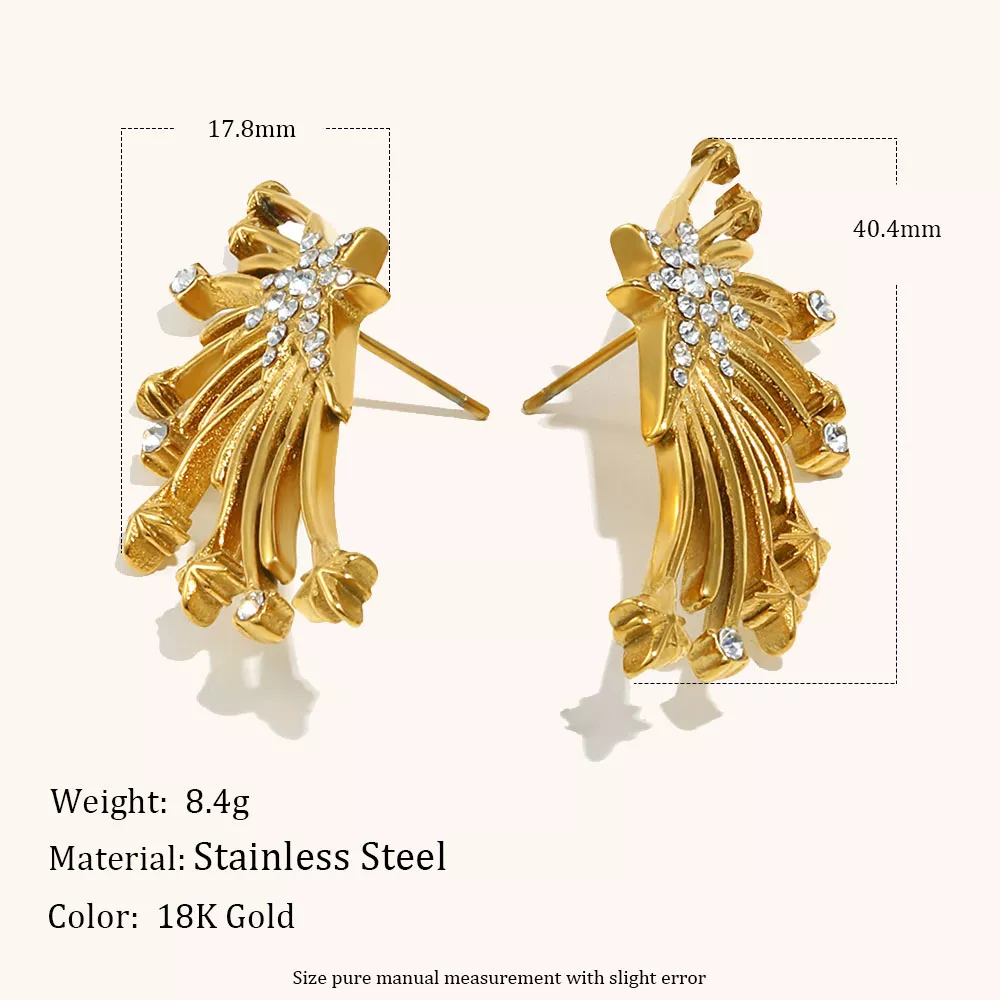 Transform your look with these stunning Shining Zircon Wings Shaped Earrings. Crafted from premium stainless steel and plated with a luxurious 18K gold finish, these earrings are designed to make a statement. Their elegant wing design adorned with sparkling zircon stones is sure to catch the light, adding a touch of sophistication to any outfit. Whether you’re dressing up for a special occasion or adding a chic accessory to your everyday wear, these earrings are the perfect addition to your jewelry collection.