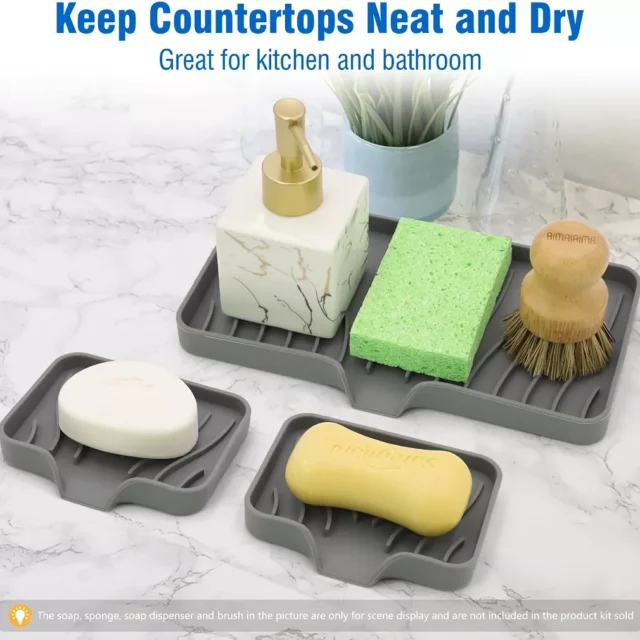 Silicone Soap Tray & Sponge Holder for Kitchen Sink and Bathroom Counter