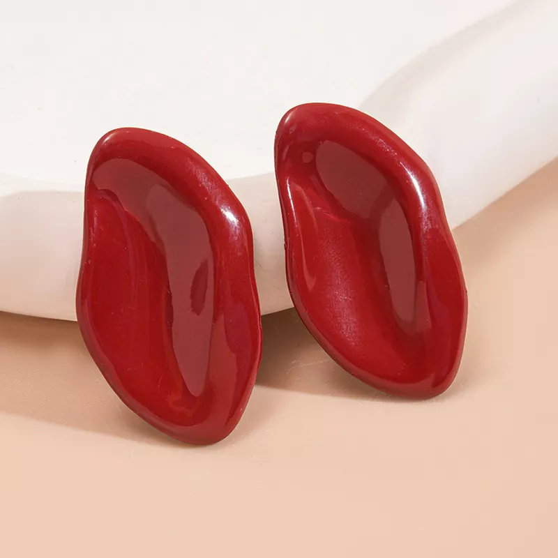 Crafted with care, these earrings feature an eye-catching red drop oil design that complements any outfit. The irregular oval shape and intricate leaf pattern make these earrings stand out, turning them from an accessory into a statement piece. The simplicity of the design balances perfectly with its bold red hue, creating a captivating contrast that’s both modern and timeless.