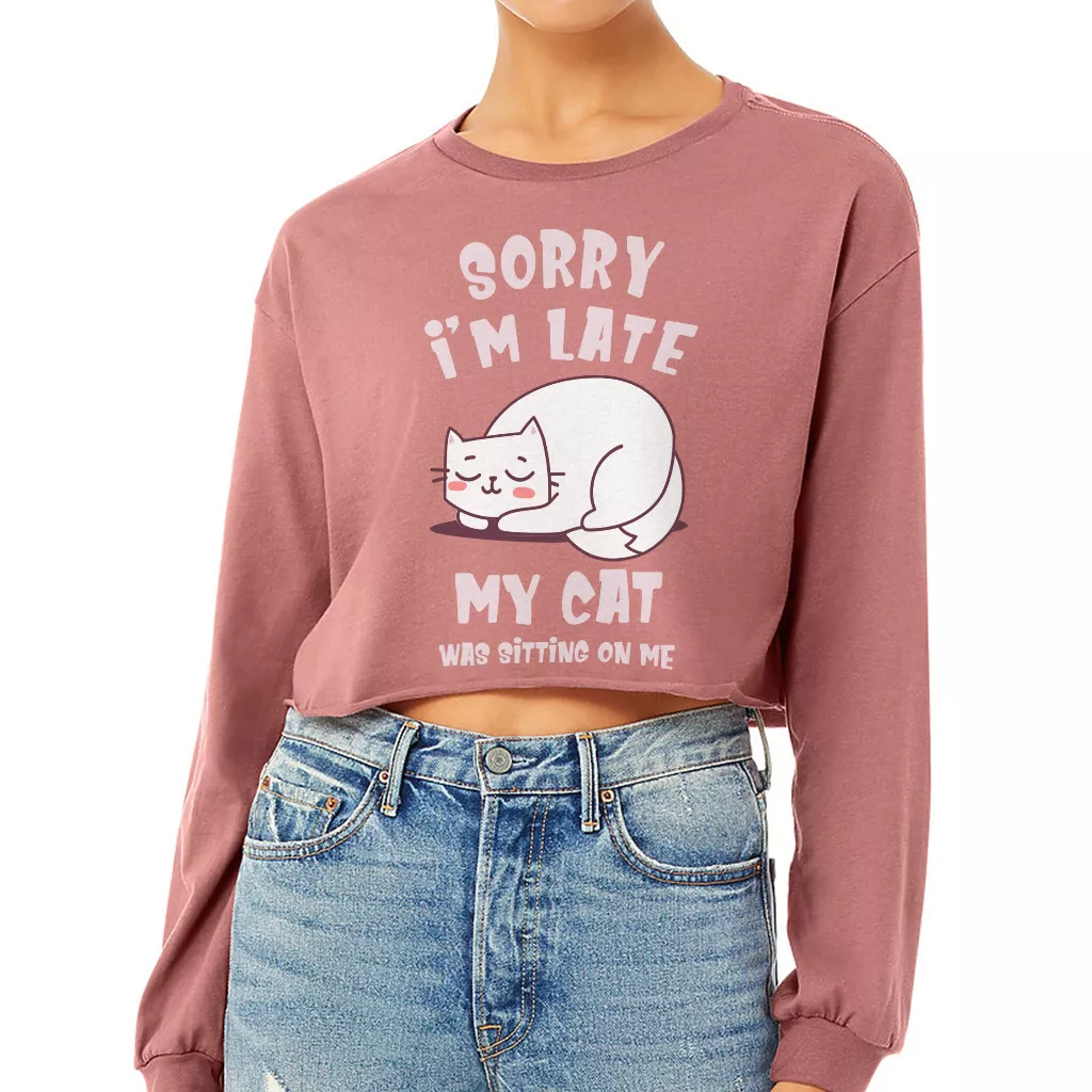 Sorry I’m Late My Cat Was Sitting On Me Cropped Long Sleeve Sweatshirt