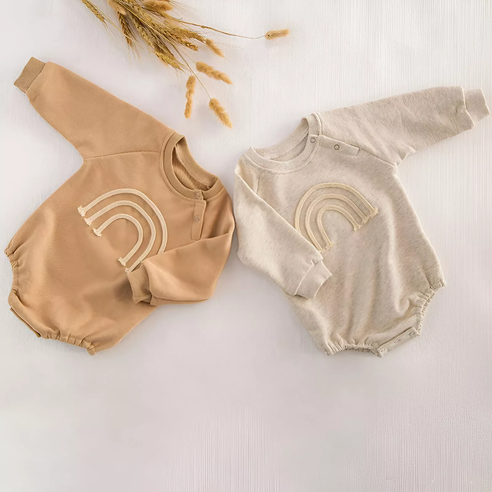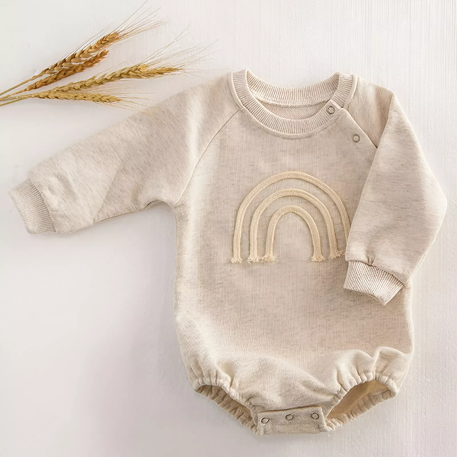 Dress your little one in comfort and charm with this adorable spring baby bodysuit. Designed with a playful rainbow patchwork look, this one-piece outfit brings color, joy, and softness to your baby’s daily wardrobe. The lightweight fabric feels gentle on delicate skin, making it perfect for warm spring days, indoor play, naps, and casual outings. With its relaxed fit and cozy long sleeves, your baby can move freely while staying snug and stylish.