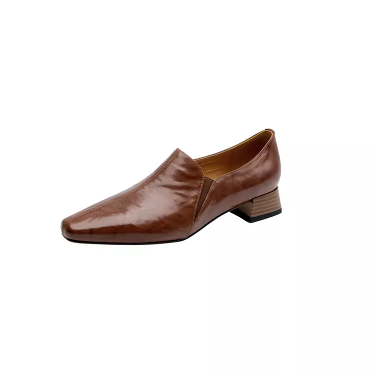 Spring Women’s Chunky Heel Square Toe Loafers – Slip-on Leather Pumps