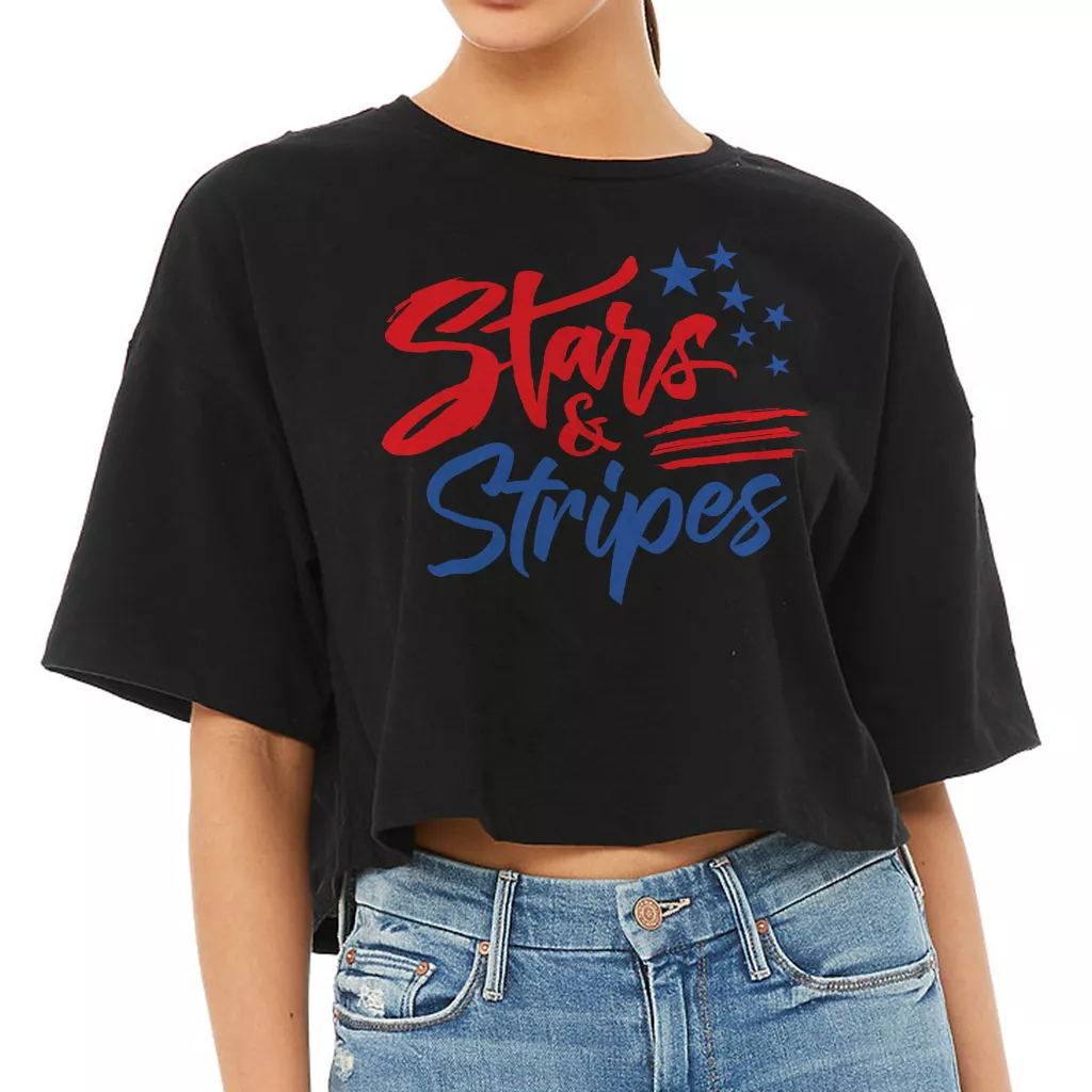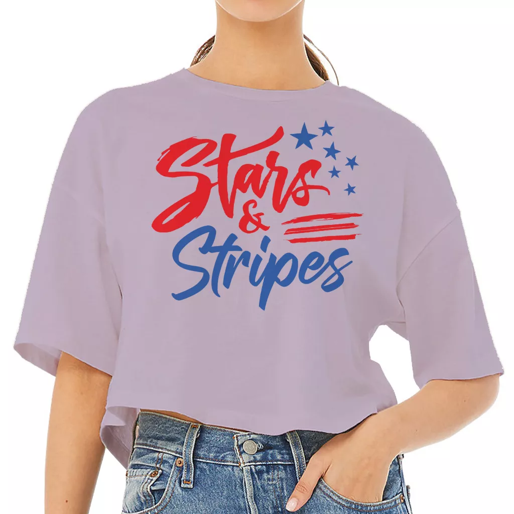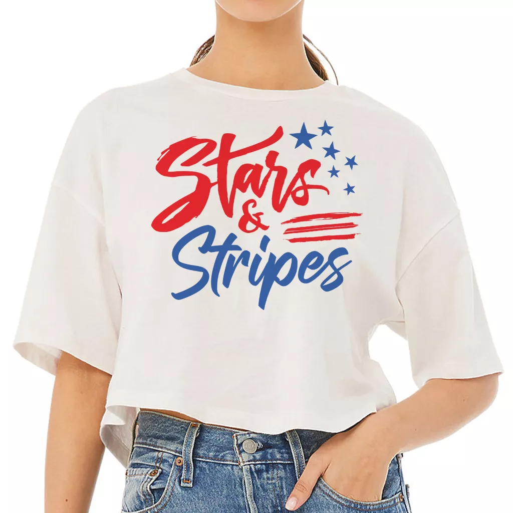 Stars and Stripes Cropped T-Shirt – Minimalist Design Trendy Tee – Memorial Day Women’s Basic T-Shirt