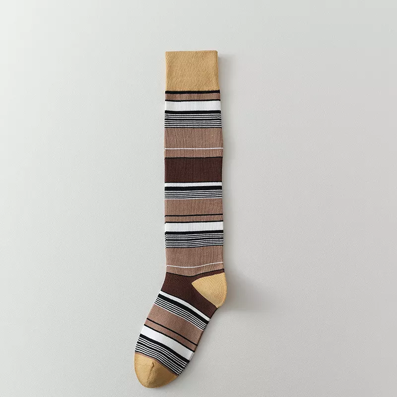 Crafted with a soft blend of cotton, polyester, and spandex, these stockings offer just the right amount of stretch and breathability to keep you comfortable all day long. The knit weaving technique ensures durability and a snug fit that won’t slip or bunch up. With a standard thickness, these socks provide warmth without feeling bulky, making them ideal for layering under boots or casual shoes. The classic striped pattern adds a timeless, trendy touch that perfectly complements your autumn and winter wardrobe.