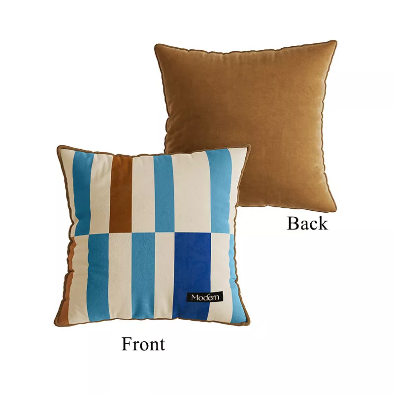 • Design: Striking striped geometric patchwork design on one side, with a solid color on the back for a balanced look.