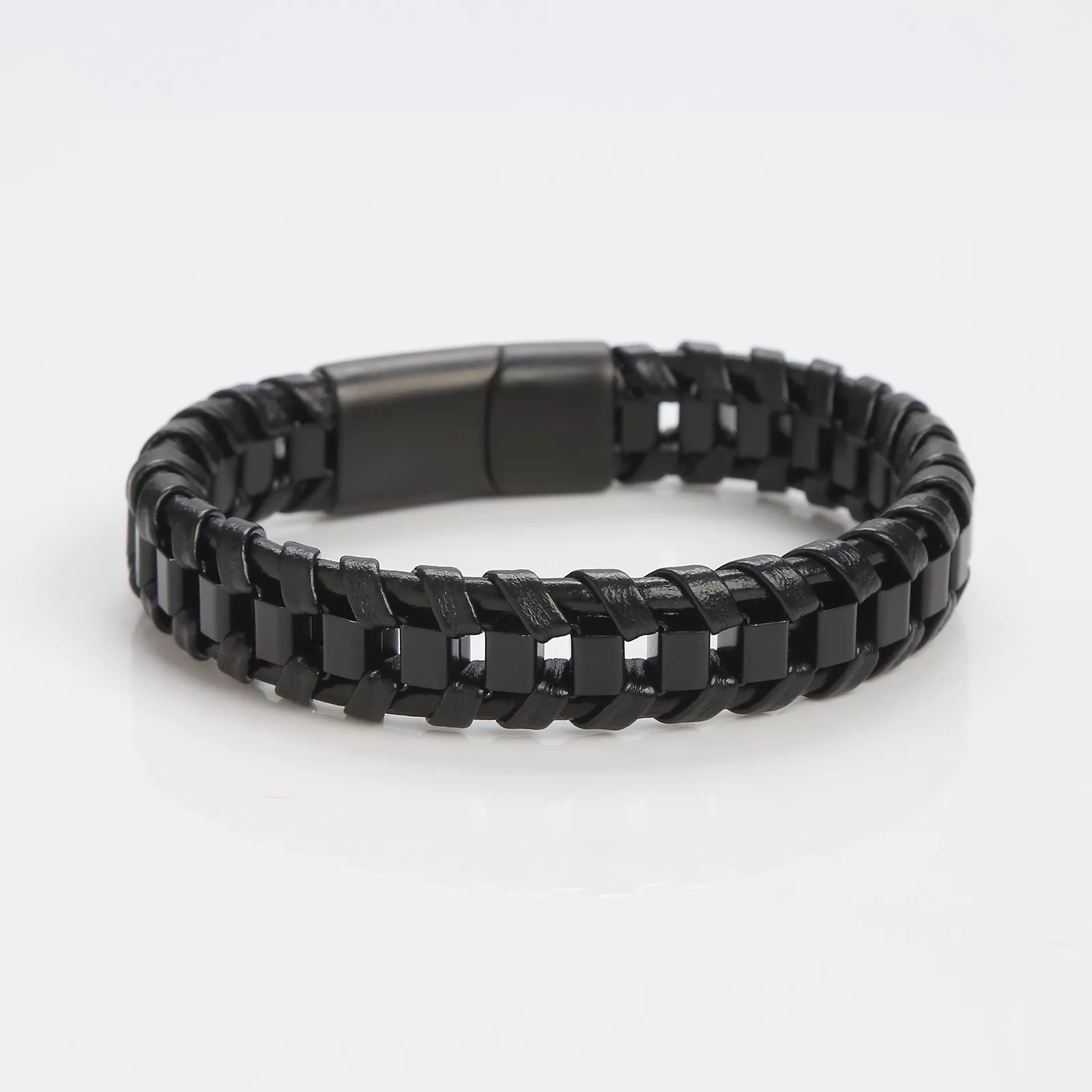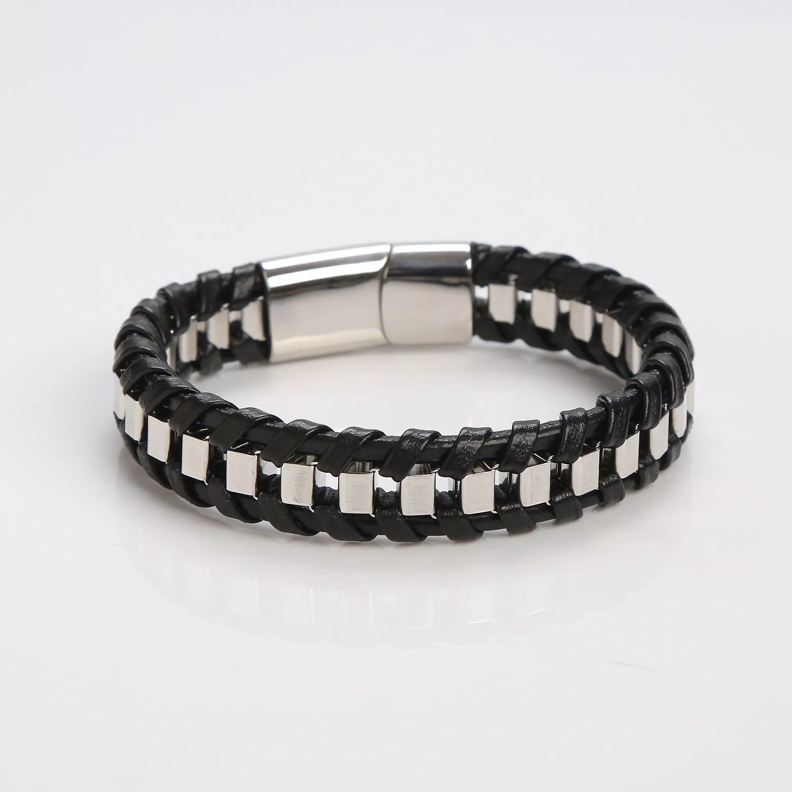 Stylish Hand Woven Stainless Steel & Leather Bracelet for Men