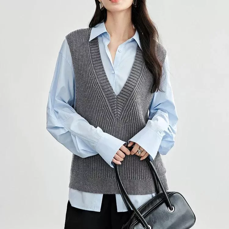 Stylish V-Neck Wool Blend Sweater Vest for Women – Spring Essential