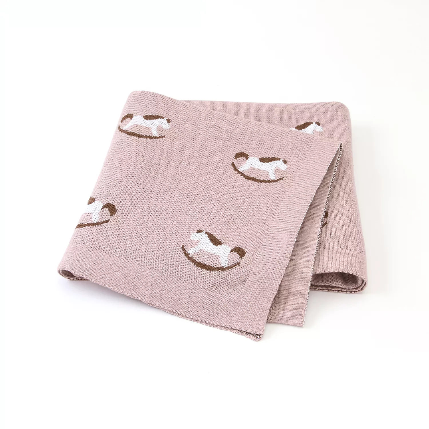 Wrap your newborn in pure softness with this cotton knit baby blanket, specially designed to keep your little one warm, comfortable, and secure. Measuring 39 x 31 inches, it’s the perfect size for cribs, strollers, or everyday snuggles. With a cute cartoon hobbyhorse design, this blanket is not just practical but also adds a touch of charm to your baby’s nursery or stroller setup.