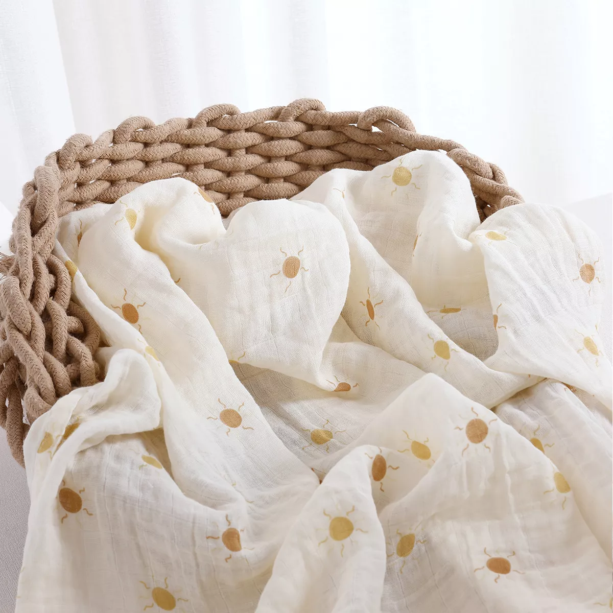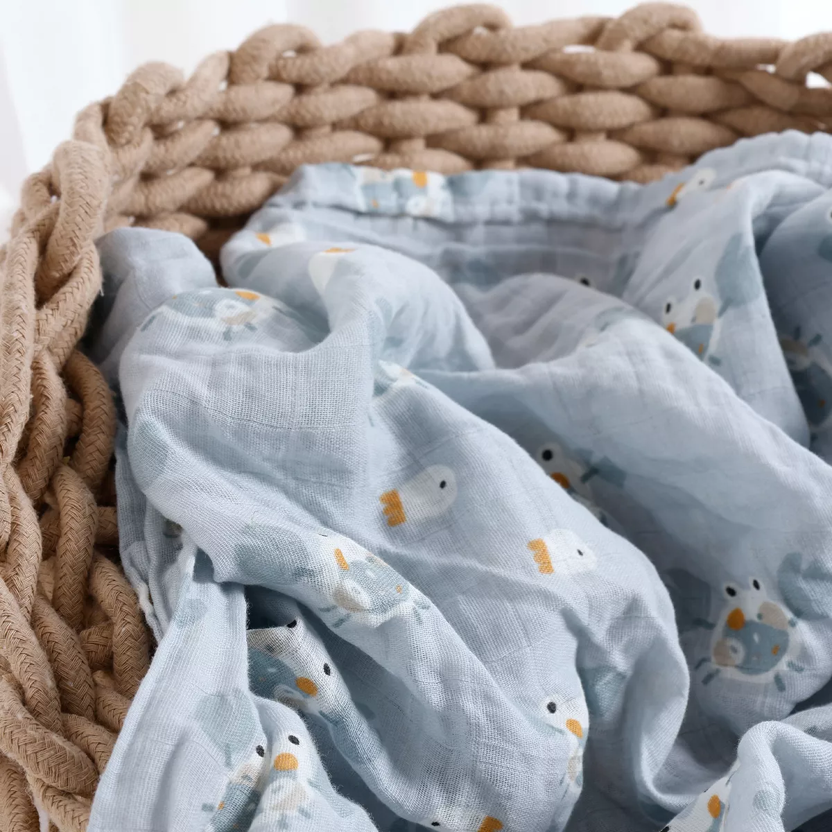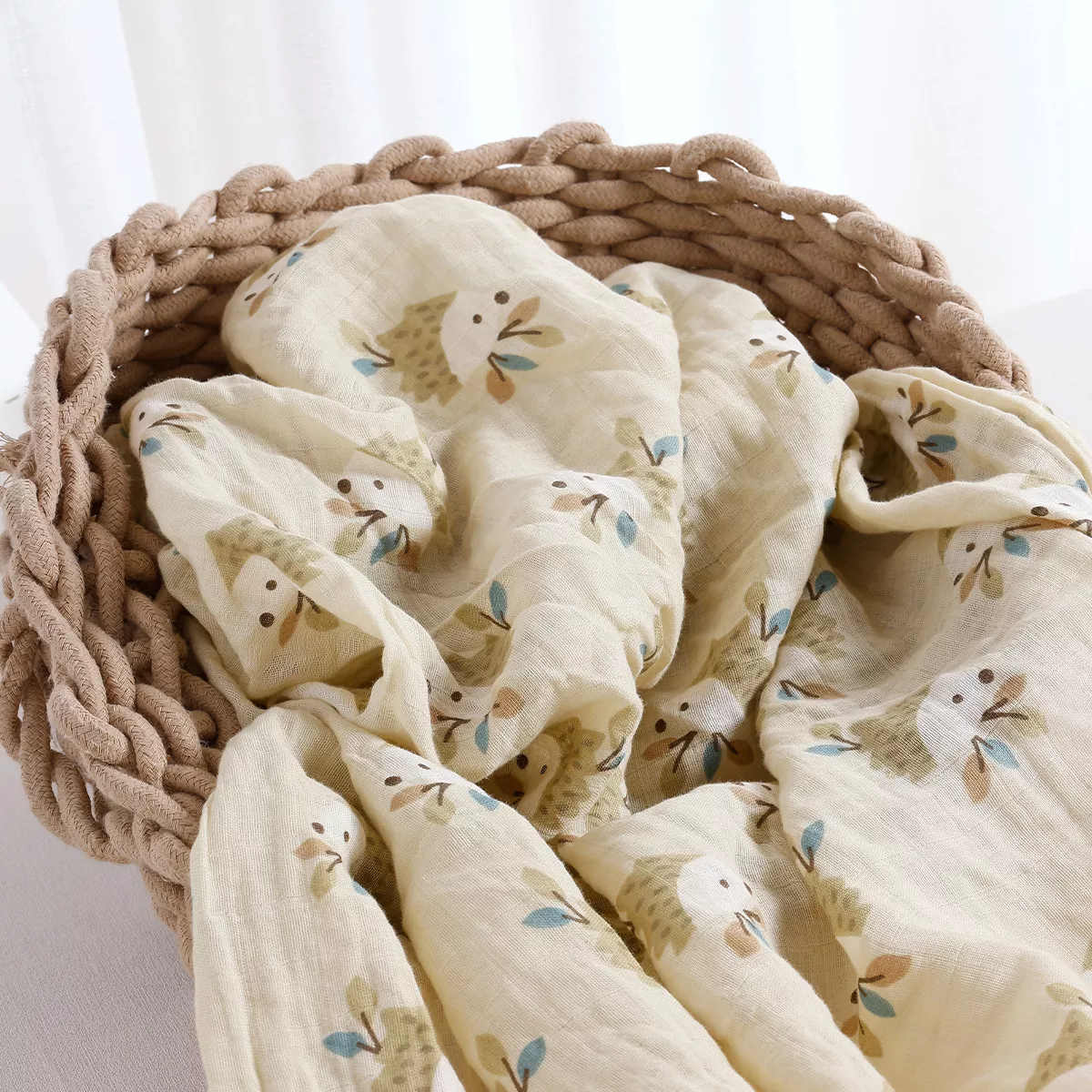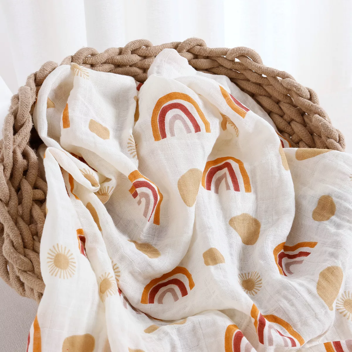 This muslin baby blanket is more than just a wrap. It’s a comforting companion for naps, a soft surface for playtime, and a cozy layer for outdoor strolls. Its lightweight feel and breathable fabric make it ideal for use in every season, while the beautiful print adds a sweet, modern look.