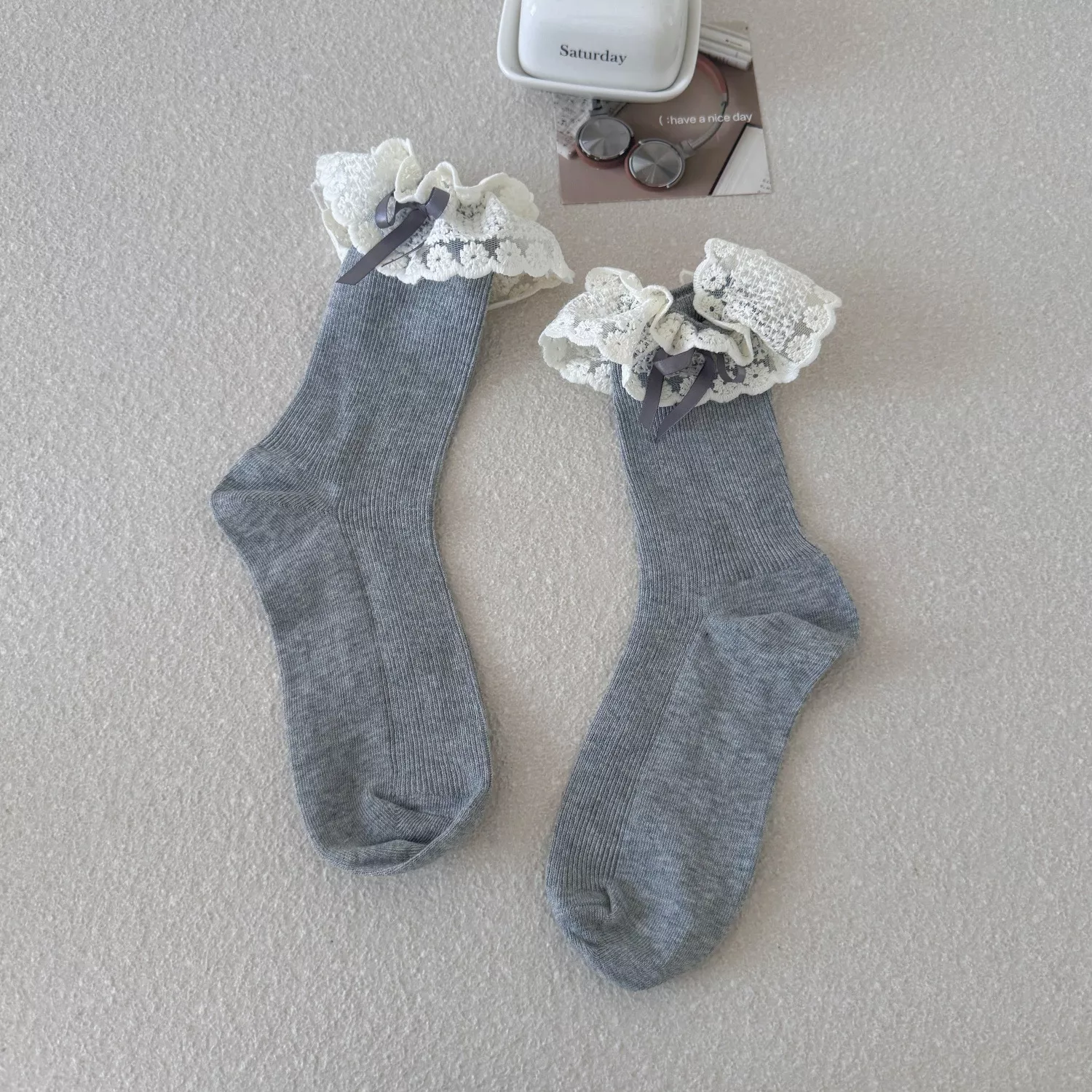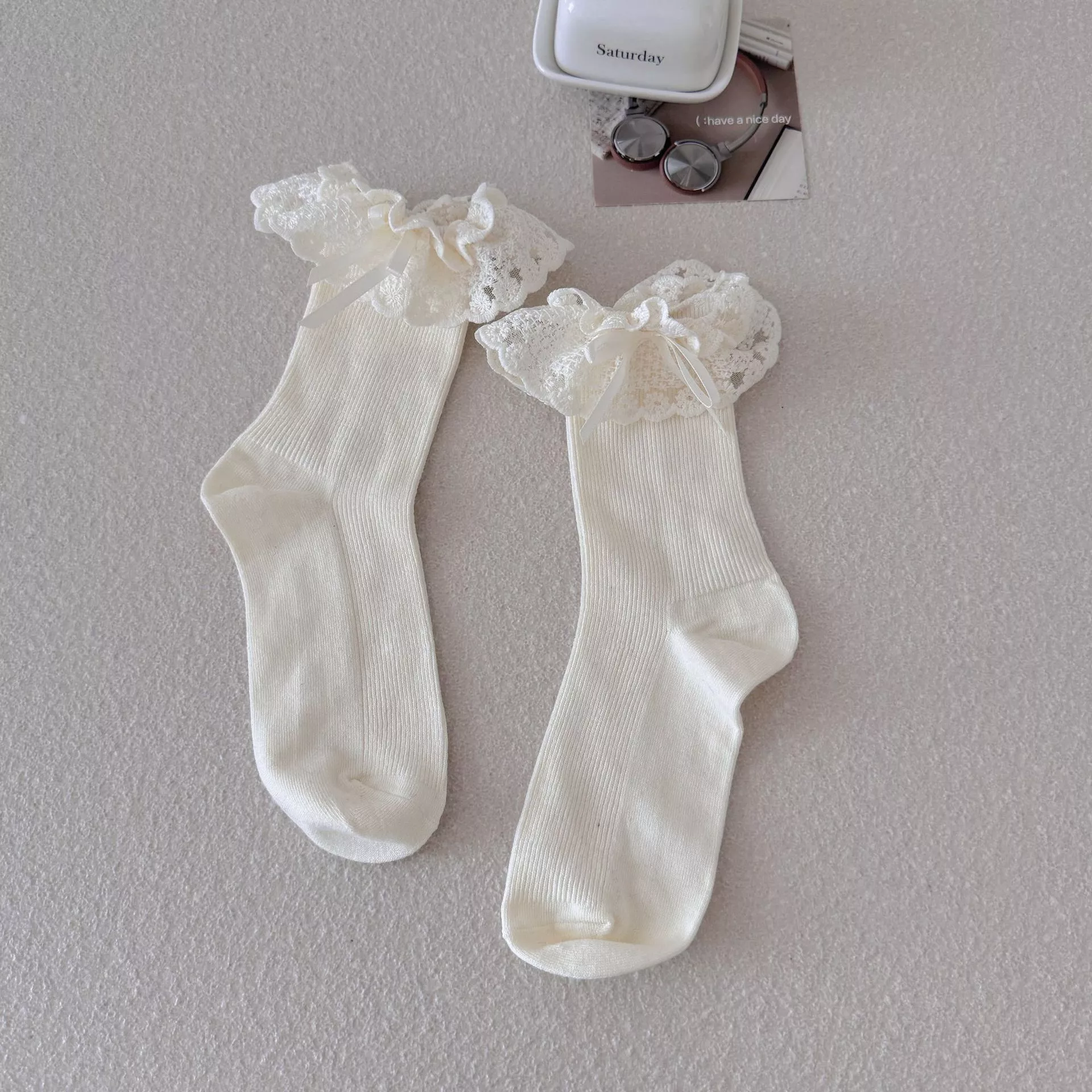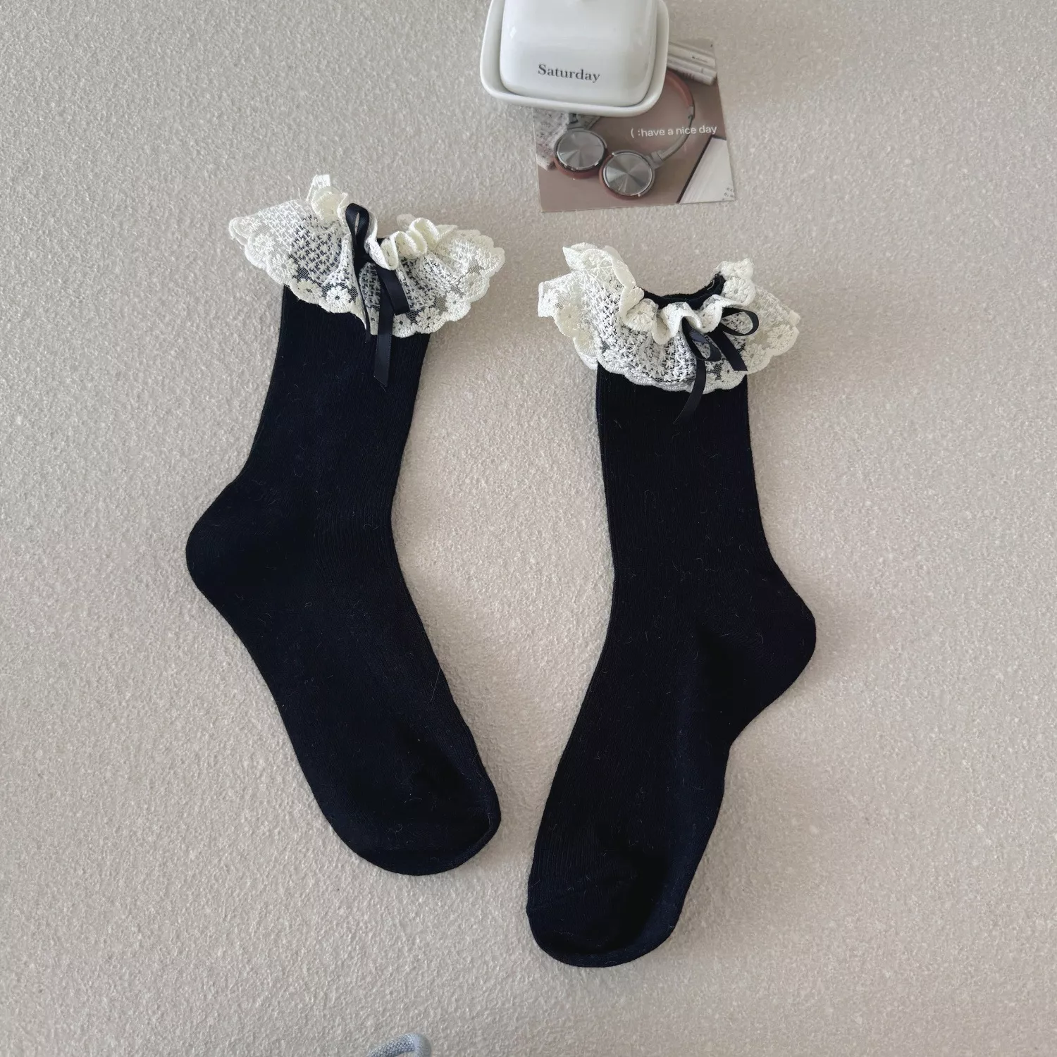 Slip into something sweet, cozy, and irresistibly cute. Add these frilly lace socks to your collection now and bring a touch of kawaii charm to every step you take.