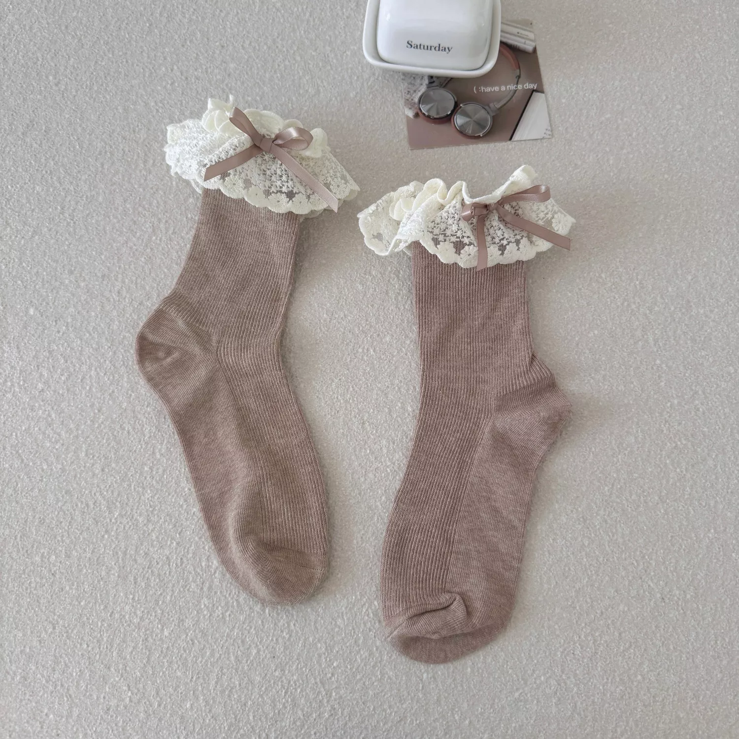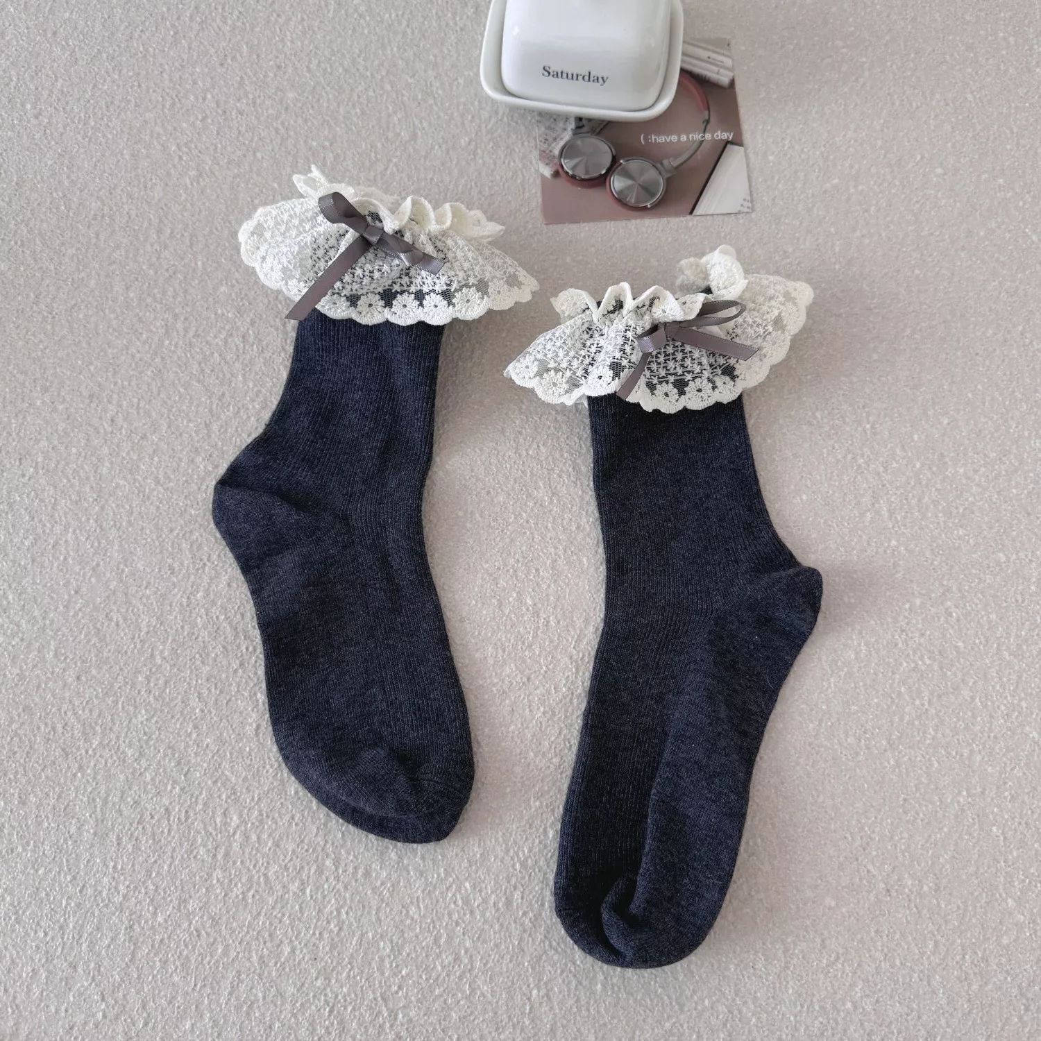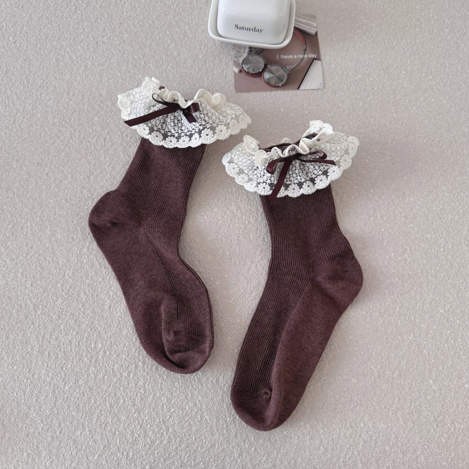 Slip into something sweet, cozy, and irresistibly cute. Add these frilly lace socks to your collection now and bring a touch of kawaii charm to every step you take.