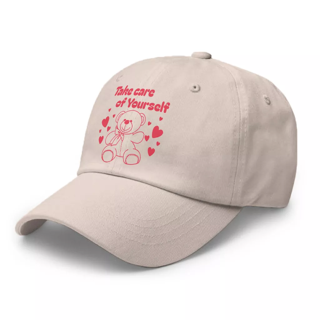Take Care Of Yourself Classic Dad Cap – Cute Teddy Bear Unisex Baseball Cap – Positive Quote Premium Dad Cap