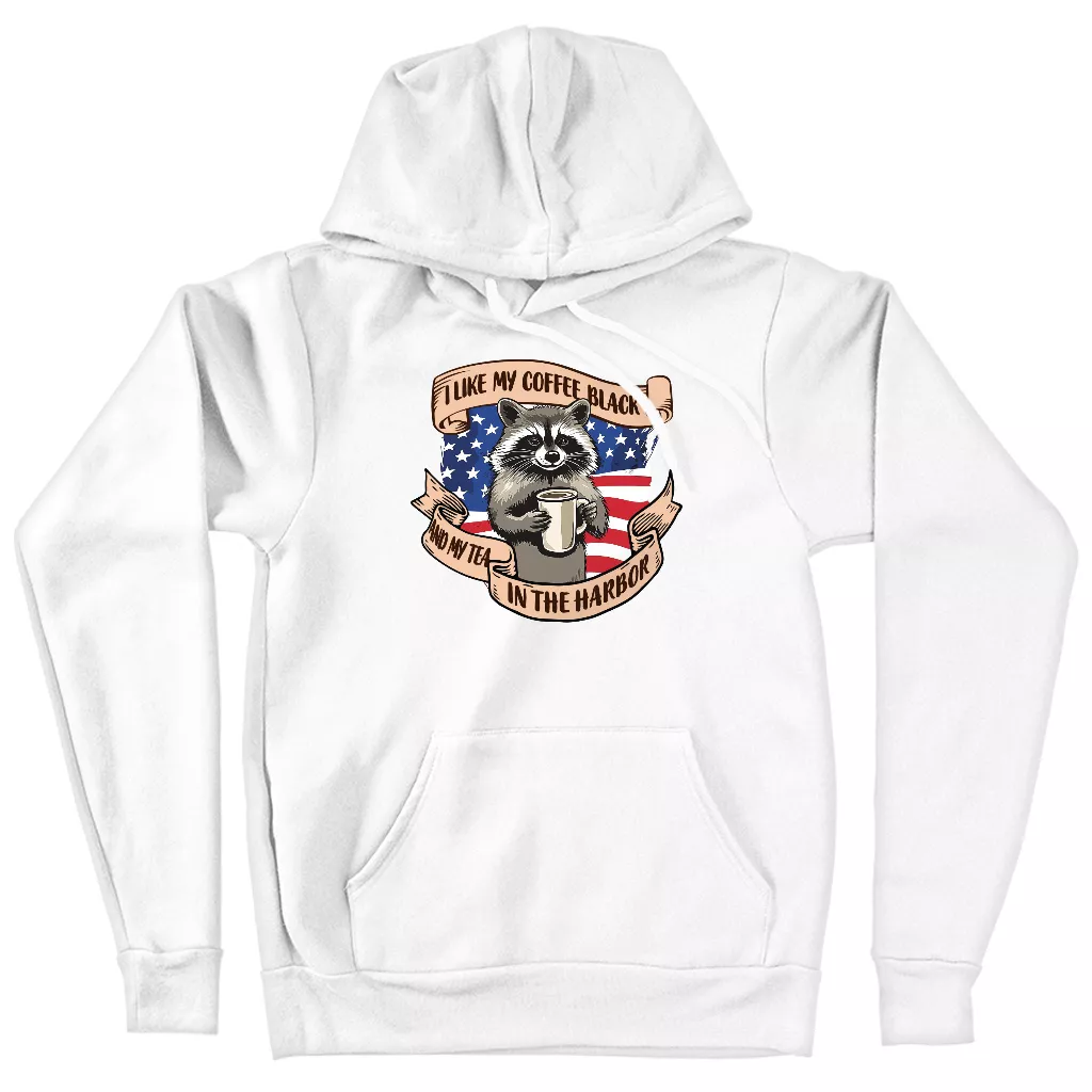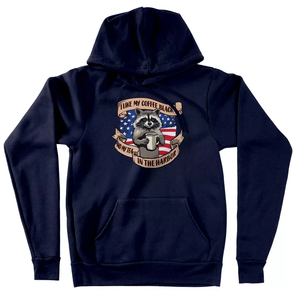 Tea in the Harbor Hoodie – Cool Quote Hooded Sweatshirt – Funny Raccoon Unisex Hoodie