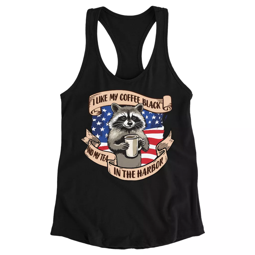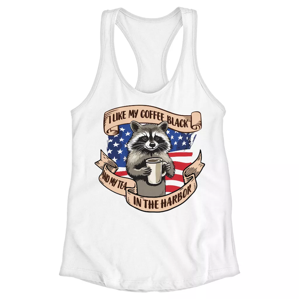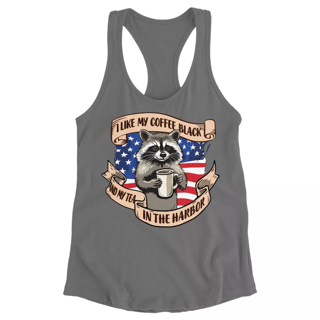 Tea in the Harbor Racerback Tank – Funny Raccoon Tank Top – Cool Quote Tank