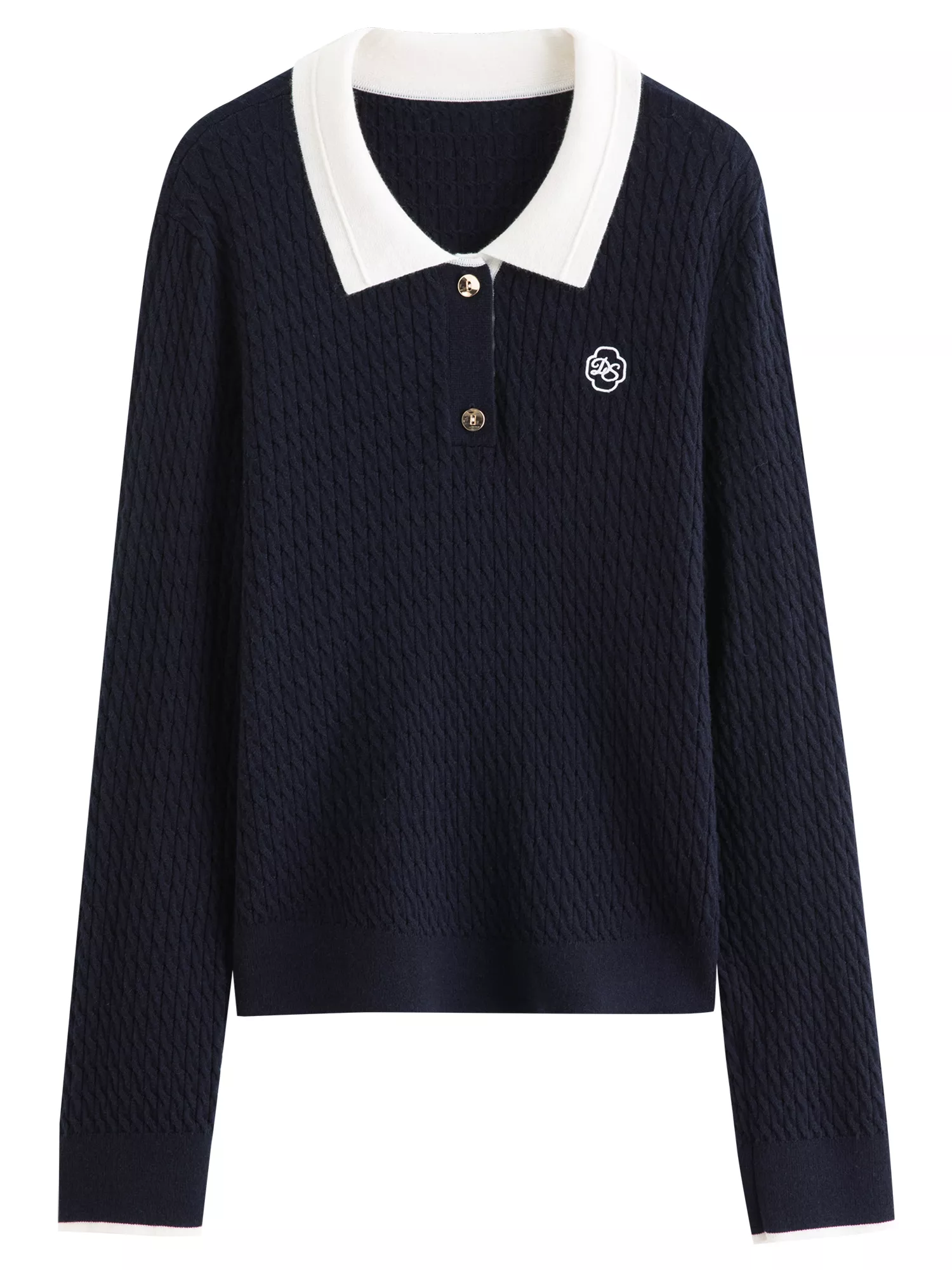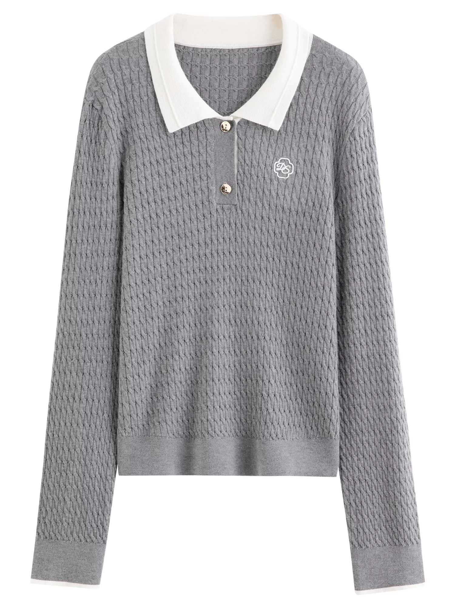 Step into autumn with elegance and ease in this textured knit polo-style pullover designed for the modern woman. Whether you’re heading to the office or meeting friends for coffee, this blouse effortlessly combines comfort, warmth, and refined style. Its sleek, turn-down ribbed collar and subtle single-button closure bring a polished touch to a relaxed silhouette, offering you a timeless piece that fits seamlessly into your fall and winter wardrobe.