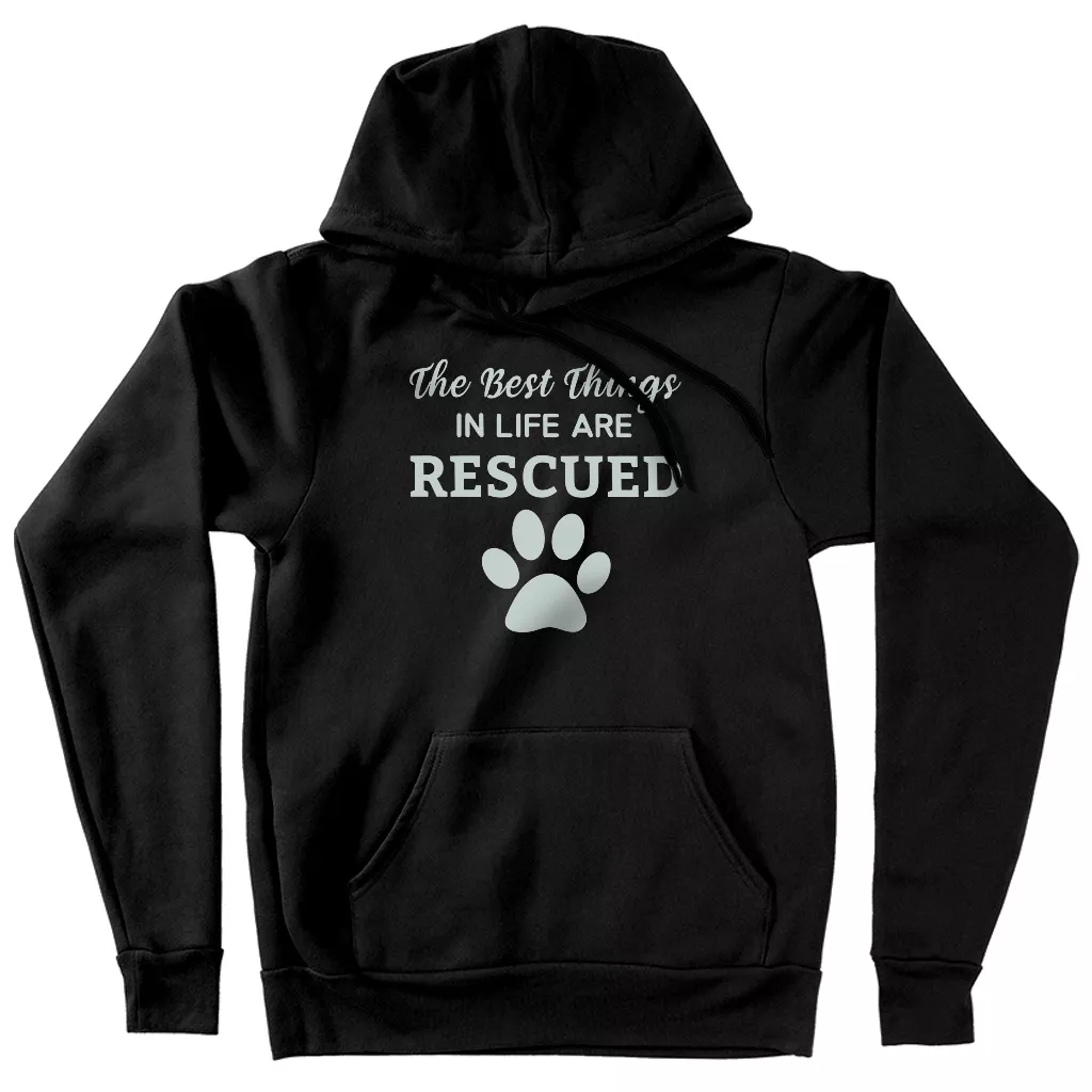 The Best Things in Life Are Rescued Hoodie – Paw Print Hooded Sweatshirt – Rescue Dog Unisex Hoodie