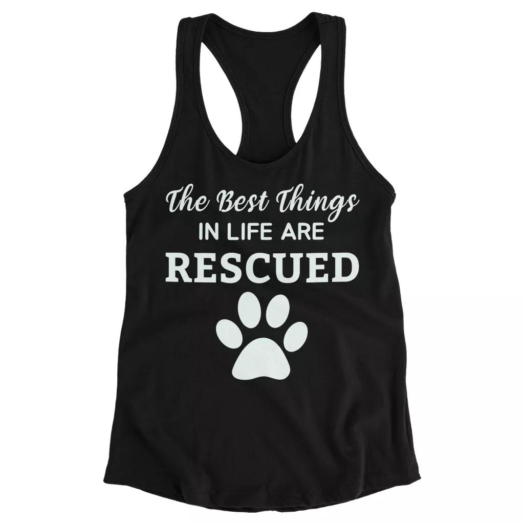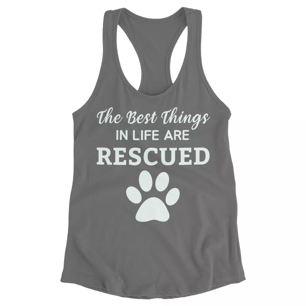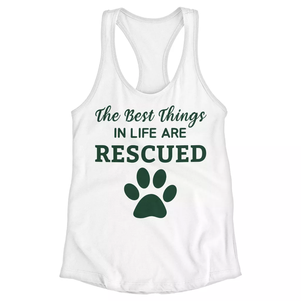The Best Things in Life Are Rescued Racerback Tank – Rescue Dog Tank Top – Paw Print Tank