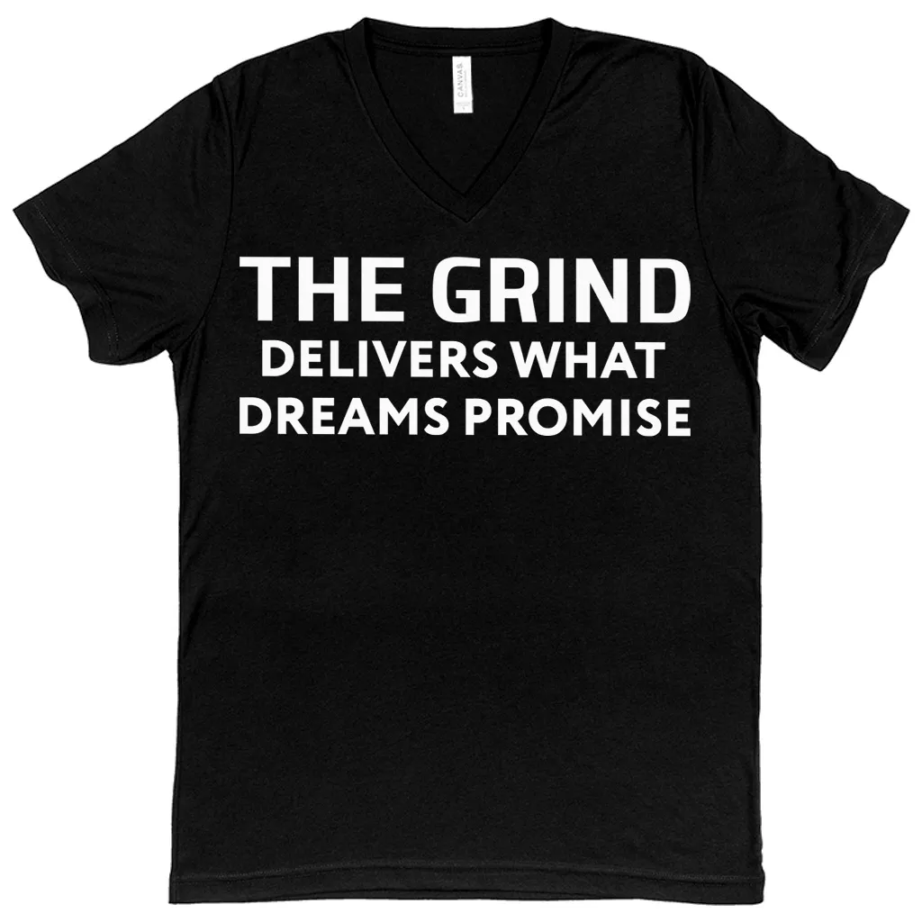 The Grind Delivers What Dreams Promise V-Neck T-Shirt