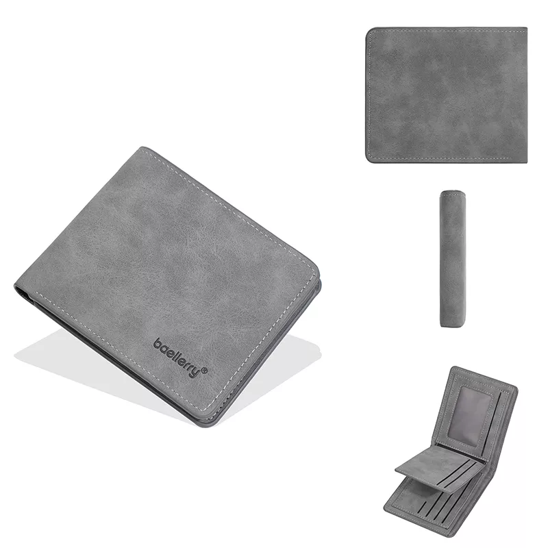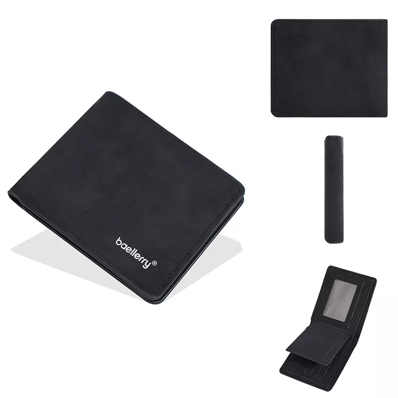 This slim wallet includes dedicated slots for cards, a photo holder for ID or personal photos, and a note compartment for cash. The clean design and solid color choices — black, blue, brown, and gray — make it easy to match with any outfit or occasion. The wallet opens effortlessly and offers quick access to your cards and ID, keeping everything you need right at your fingertips.