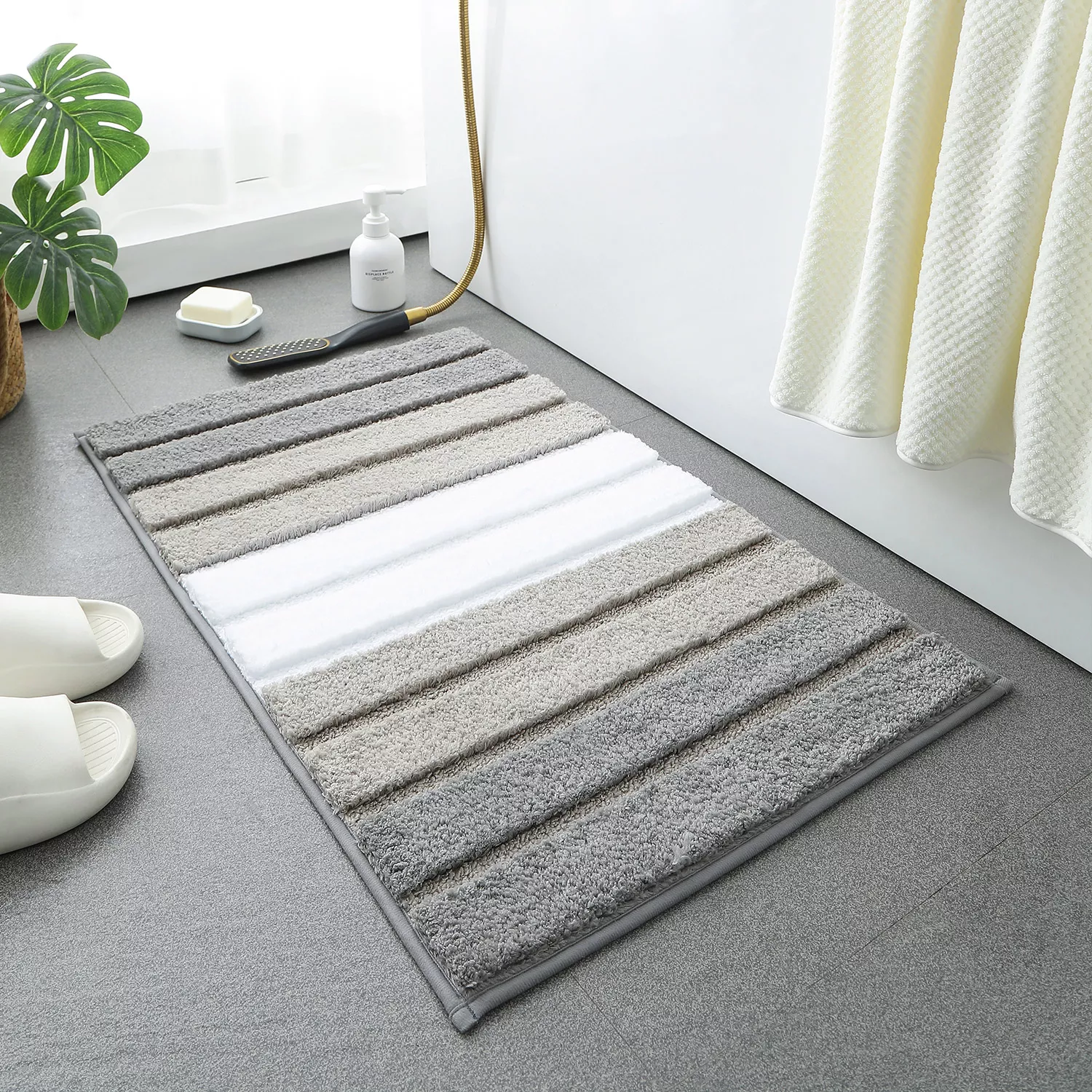 Transform every step you take after a bath or shower with this ultra-soft, ultra-absorbent bathroom mat. Crafted from plush, ultra-fine polyester fibers, it delivers a cloud-like feel while quickly soaking up moisture to keep your floors dry and safe. Designed for modern homes, this striped mat blends comfort, function, and style in one simple upgrade.