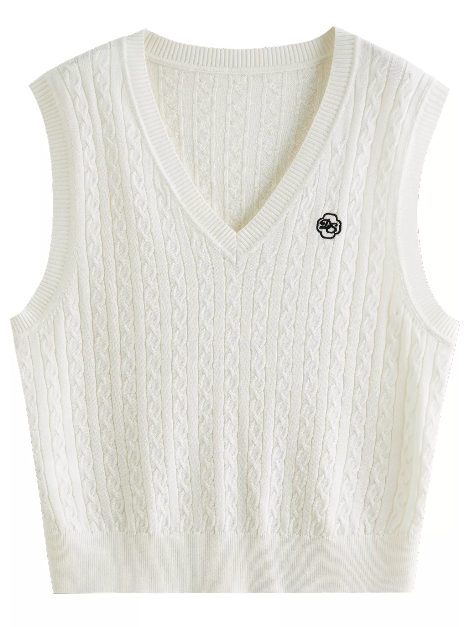 Simple, clean, and effortlessly chic—this white cable knit sweater vest is your go-to layering essential for autumn and winter. With its relaxed fit, sleeveless cut, and timeless V-neck design, it blends cozy texture with everyday sophistication. Whether you’re heading to the office, out for lunch, or lounging at home, this vest offers that polished-yet-comfortable look every modern woman wants.
