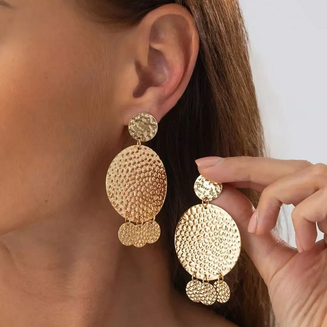 Make a timeless statement with these vintage-inspired round pendant earrings, designed for women who love effortless elegance. Featuring a simple yet striking geometric design in radiant gold color, these earrings bring together bohemian charm and modern sophistication. Whether worn for a wedding, a romantic evening, or to elevate your everyday look, they add the perfect finishing touch to any outfit.
