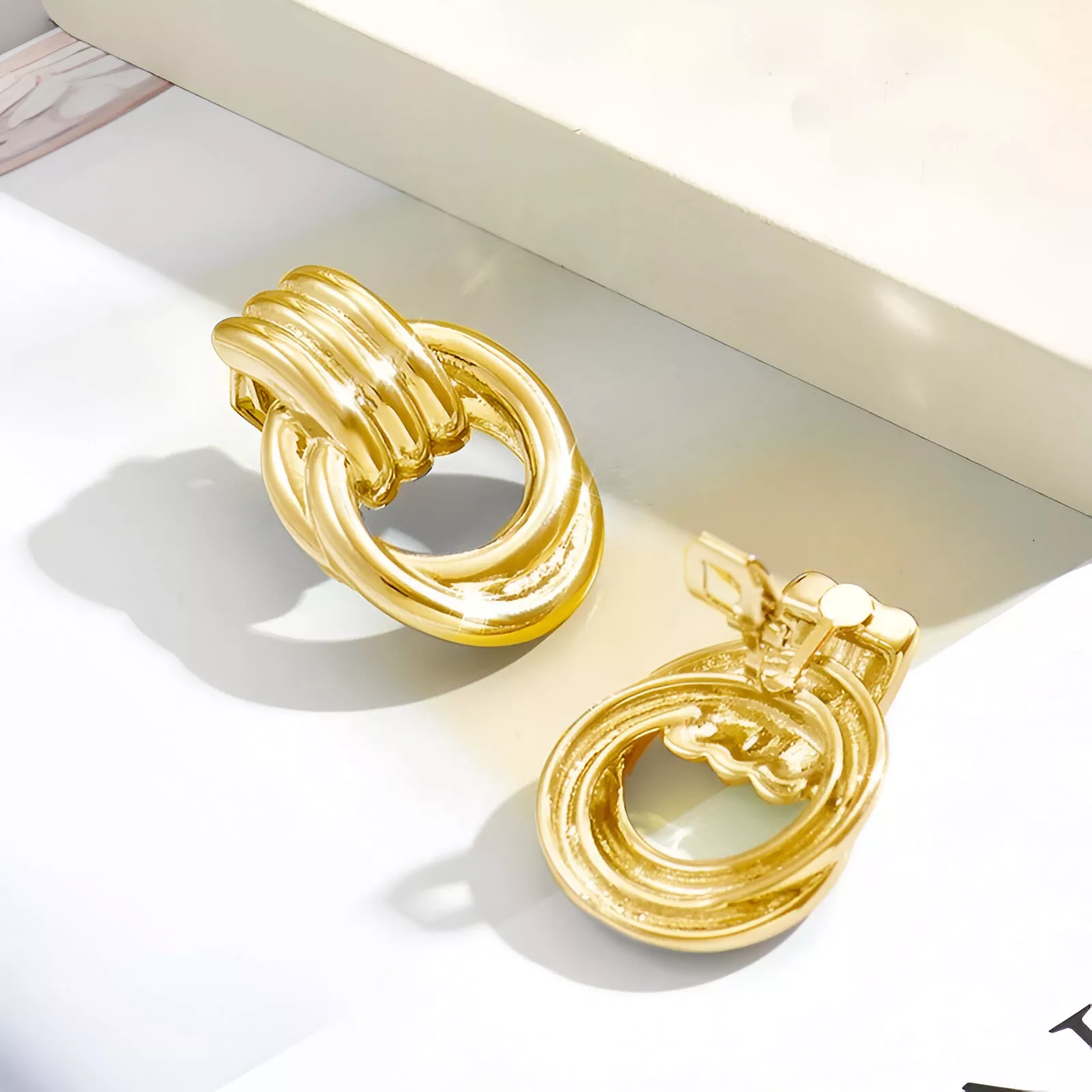 Vintage Gold Twisted Round Geometric Metal Drop Earrings