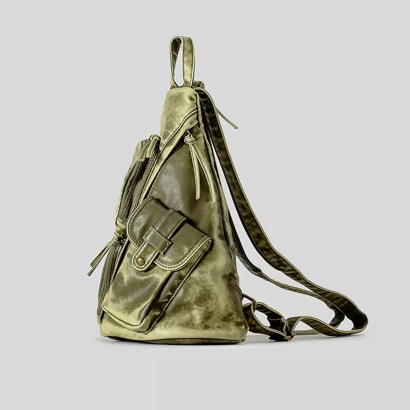 Vintage PU Leather Chest Backpack – Retro Softback with Multiple Pockets