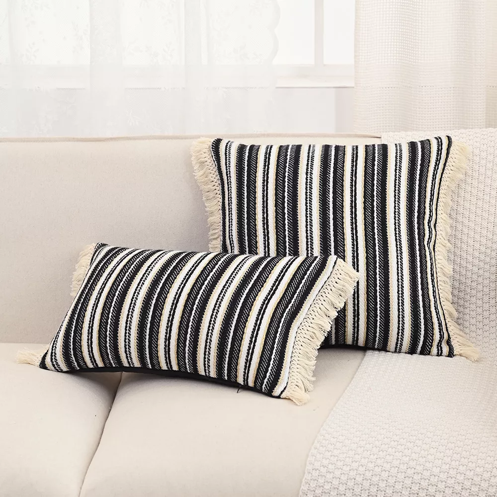 Available in two versatile sizes, 12 x 20 inches and 18 x 18 inches, this pillow cover fits standard throw pillows with ease. Use it to refresh your sofa, add comfort to your bed, or decorate a bay window or armchair. Its neutral, striped design makes it easy to mix and match with other cushions, blankets, and textures.