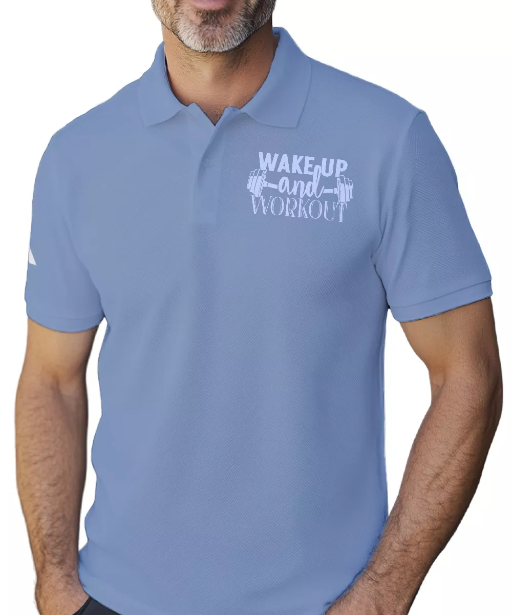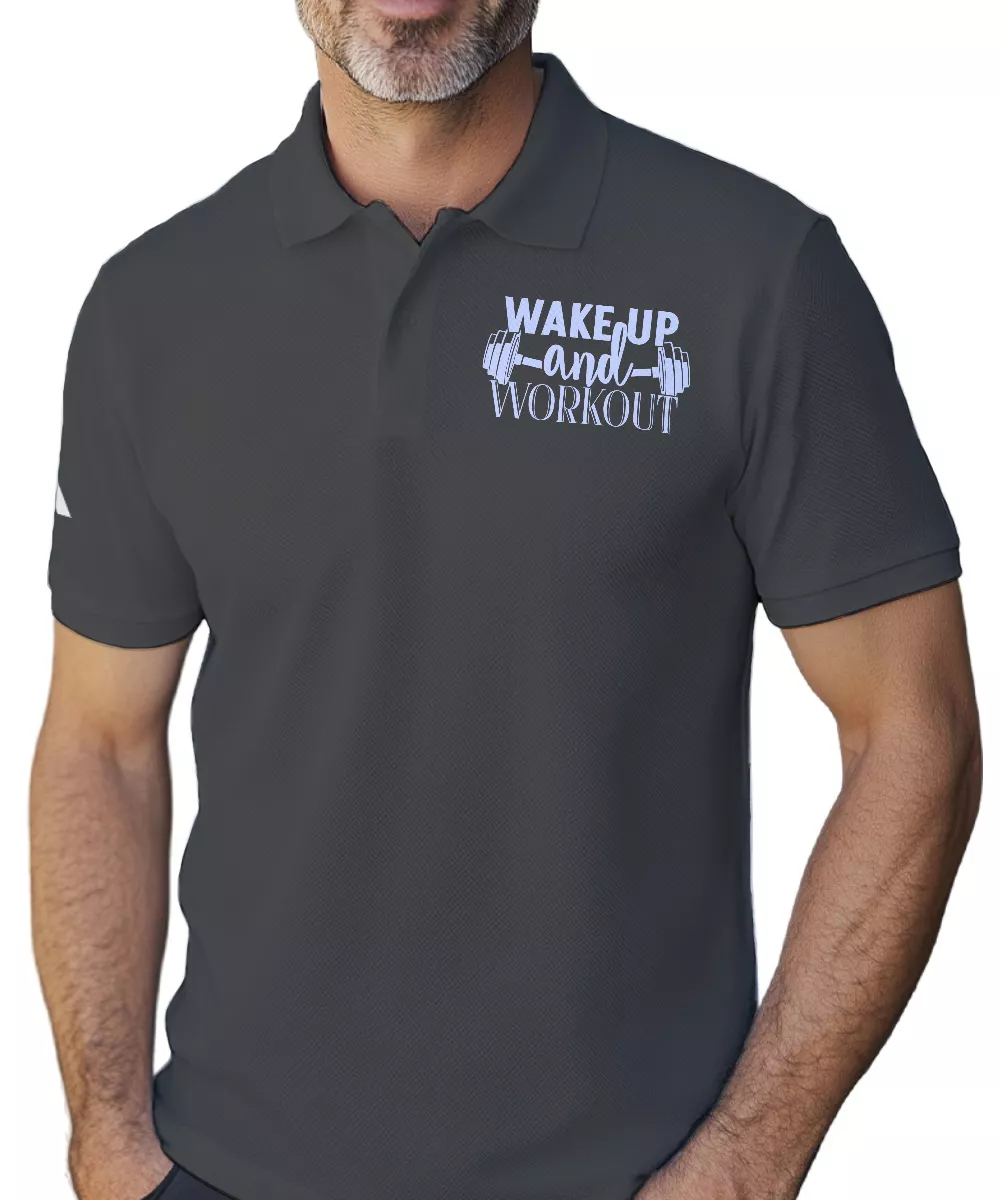 Wake Up and Workout adidas Polo Shirt – Personal Trainer Short Sleeve Tactical Shirts – Fitness Lightweight Golf Shirts