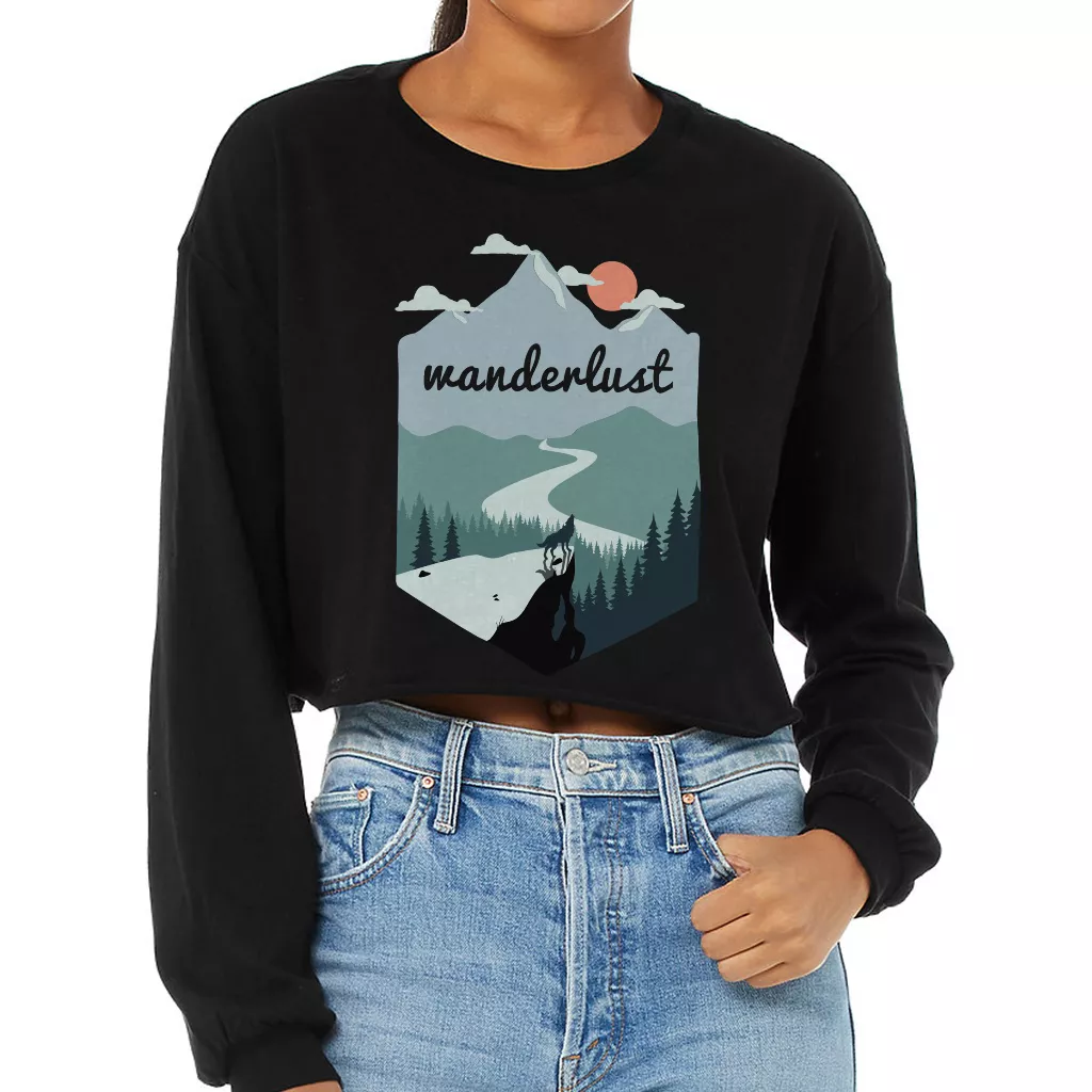 Wanderlust Cropped Long Sleeve Sweatshirt – Outdoorsy Women’s Crop Top – Mountains Long Sleeves Pullover