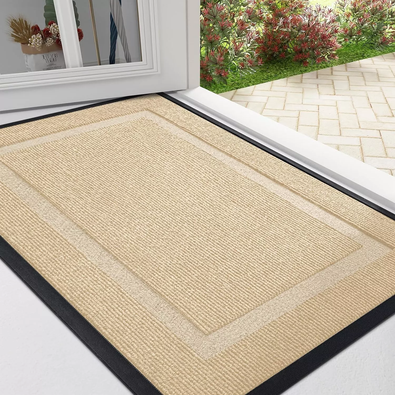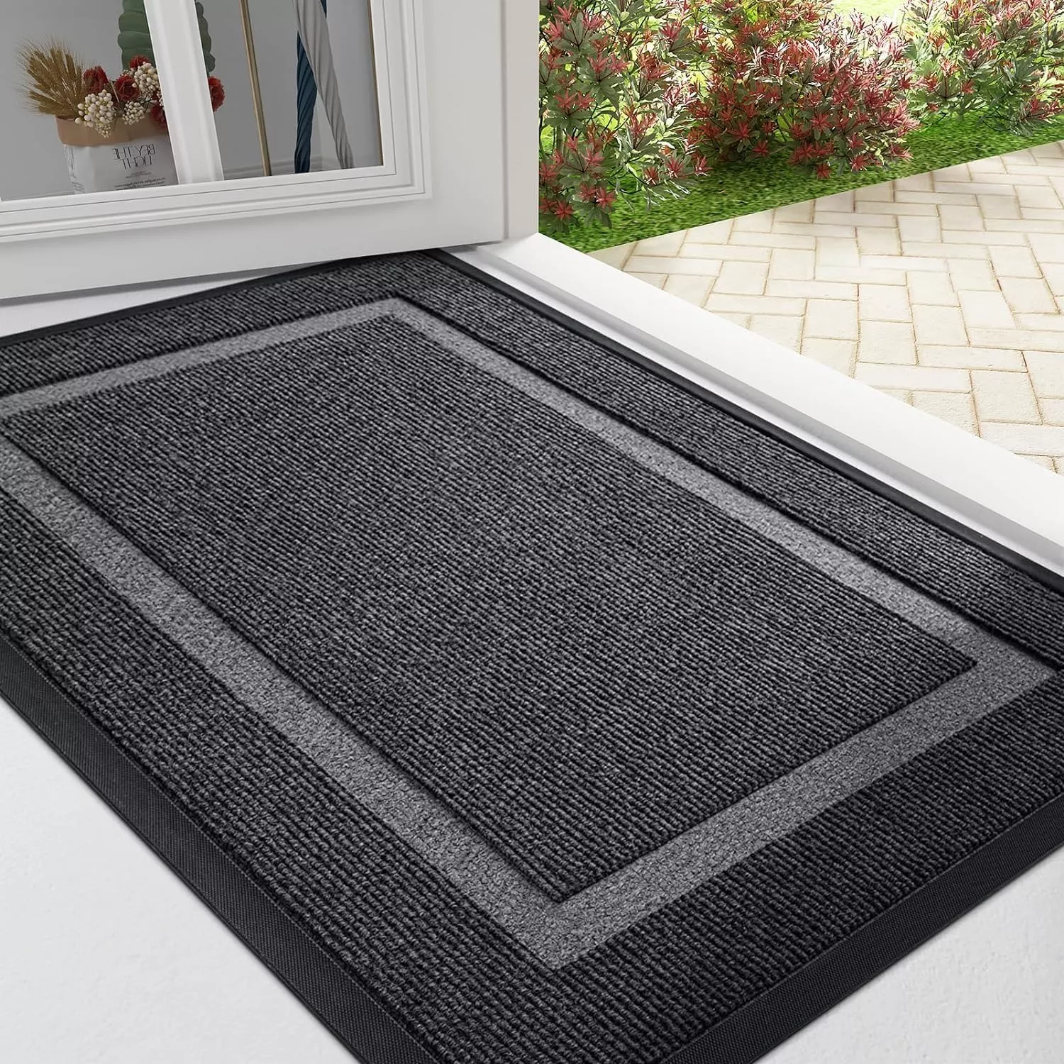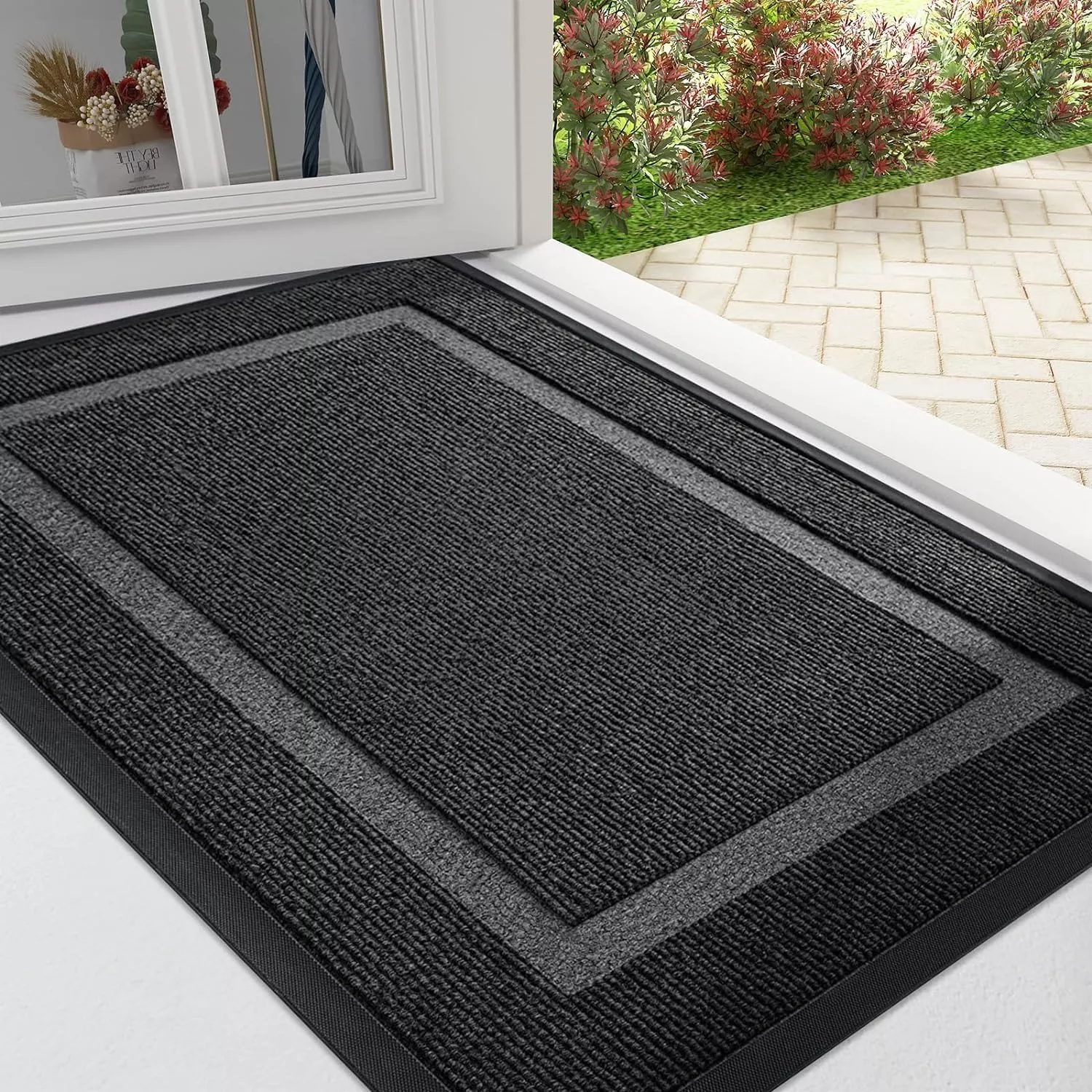 Waterproof Indoor Outdoor Front Door Mat – Non-Slip Low Profile Rubber Entryway Rug
