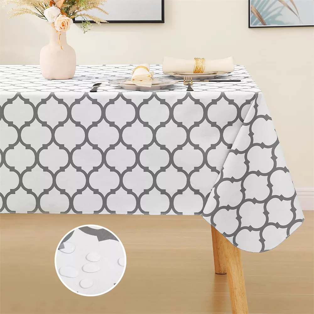 Give your table the perfect blend of style and durability with this waterproof rectangular PVC tablecloth. Crafted from thick, high-quality vinyl with a premium flannel backing, this tablecloth not only enhances your dining décor but also protects your table from everyday wear and tear. Ideal for both casual family meals and special occasions, it brings sophistication and convenience to any setting.