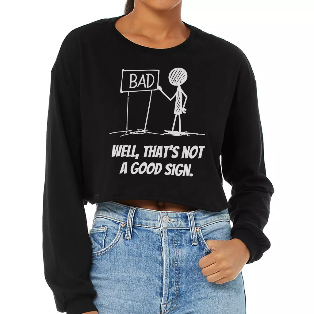 Well That’s Not a Good Sign Cropped Long Sleeve Sweatshirt – Funny Sarcastic Women’s Crop Top – Novelty Joke Long Sleeves Pullover