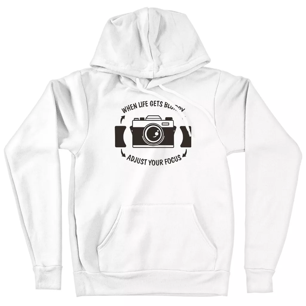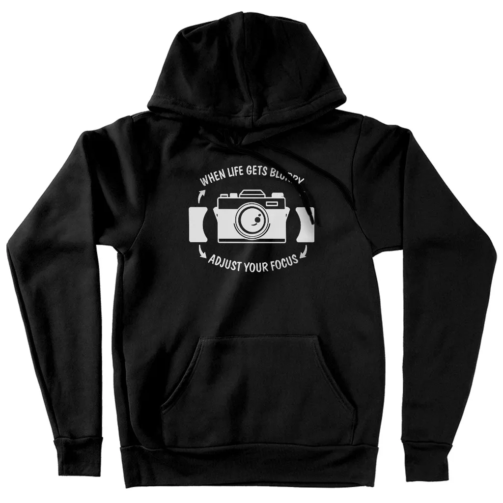 When Life Gets Blurry Adjust Your Focus Hoodie – Funny Photographer Hooded Sweatshirt – Camera Unisex Hoodie