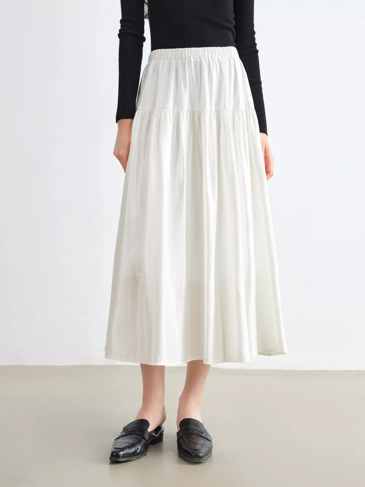 White Pearlescent A-Line Skirt – Elegant Mid-Length