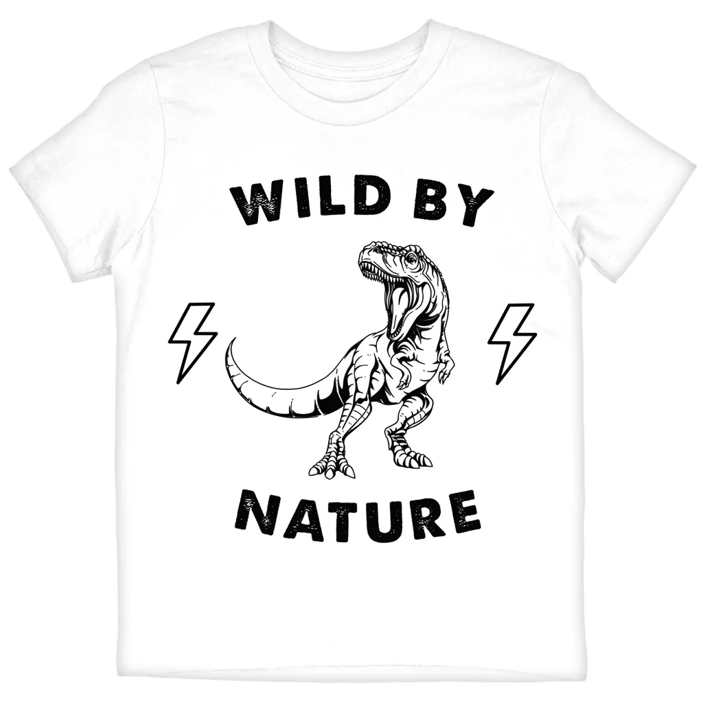 Wild by Nature Kids’ Cotton T-Shirt – T-Rex Short Sleeve Tee – Dinosaur T-Shirt for Kids