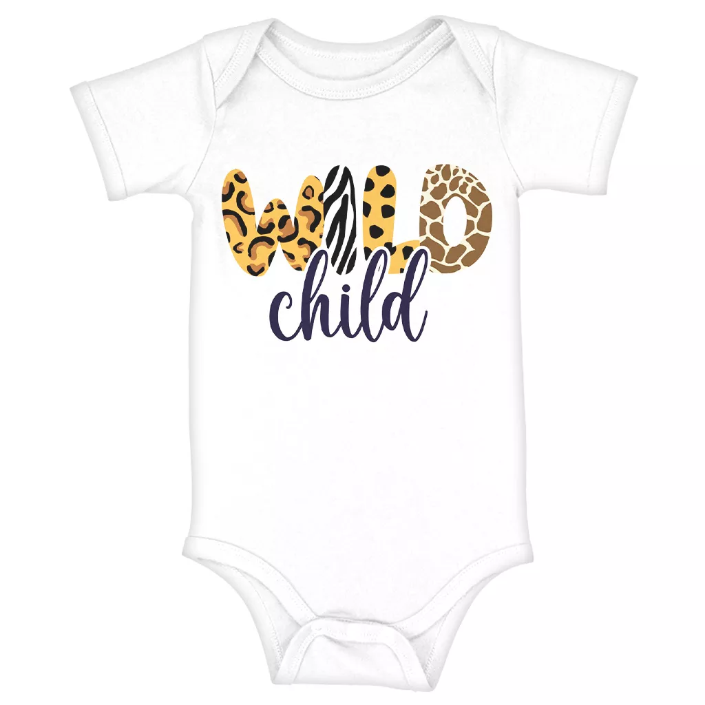 Wild Child Baby Onesie – Retro Boho Baby Bodysuit – Animal Print Baby One-Piece