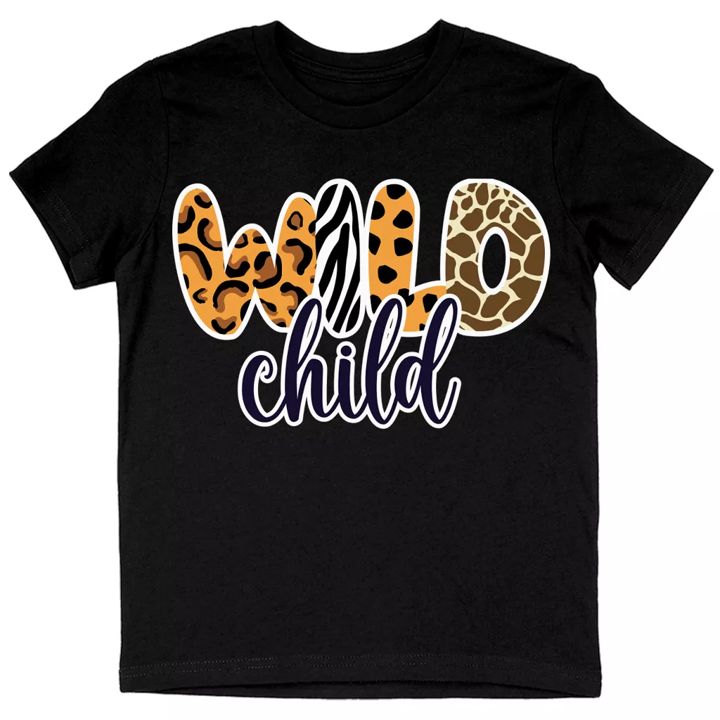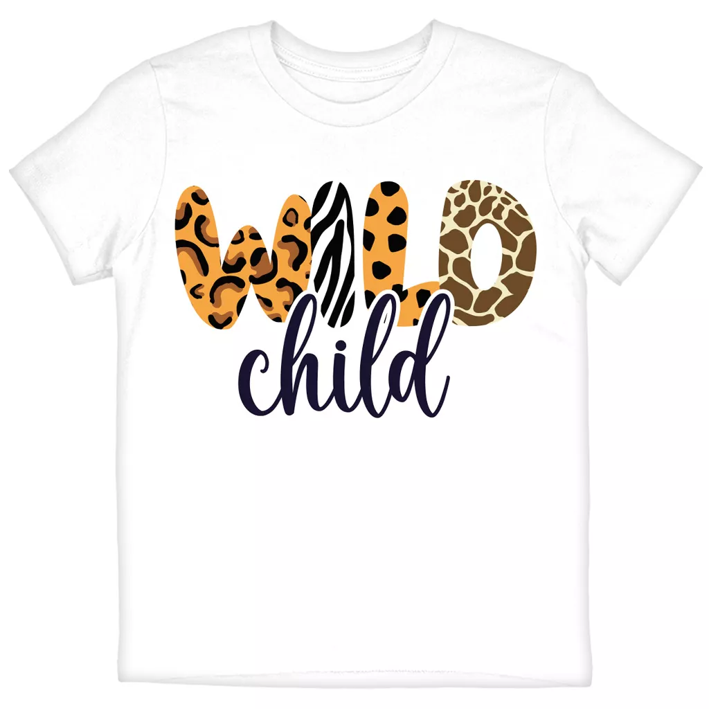 Wild Child Kids’ Cotton T-Shirt – Retro Boho Short Sleeve Tee – Animal Print T-Shirt for Kids