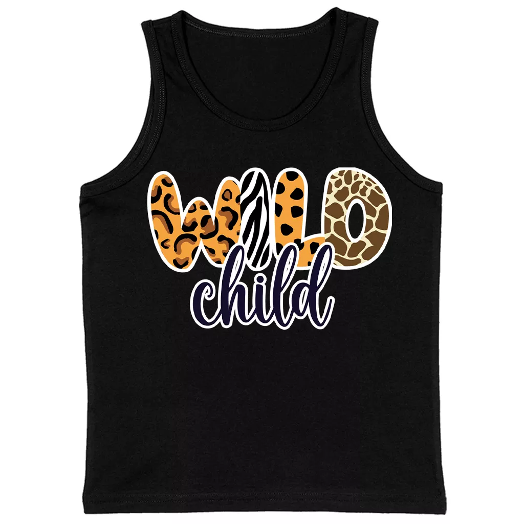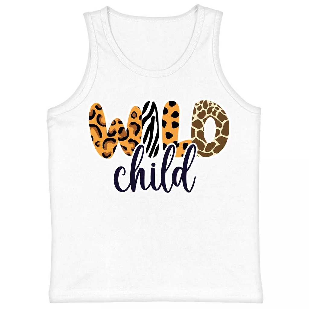 Wild Child Kids’ Jersey Tank – Retro Boho Sleeveless T-Shirt – Animal Print Kids’ Tank Top