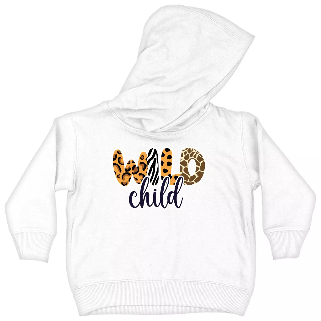 Wild Child Toddler Hoodie – Animal Print Hoodie for Kids – Retro Boho Hooded Pullover