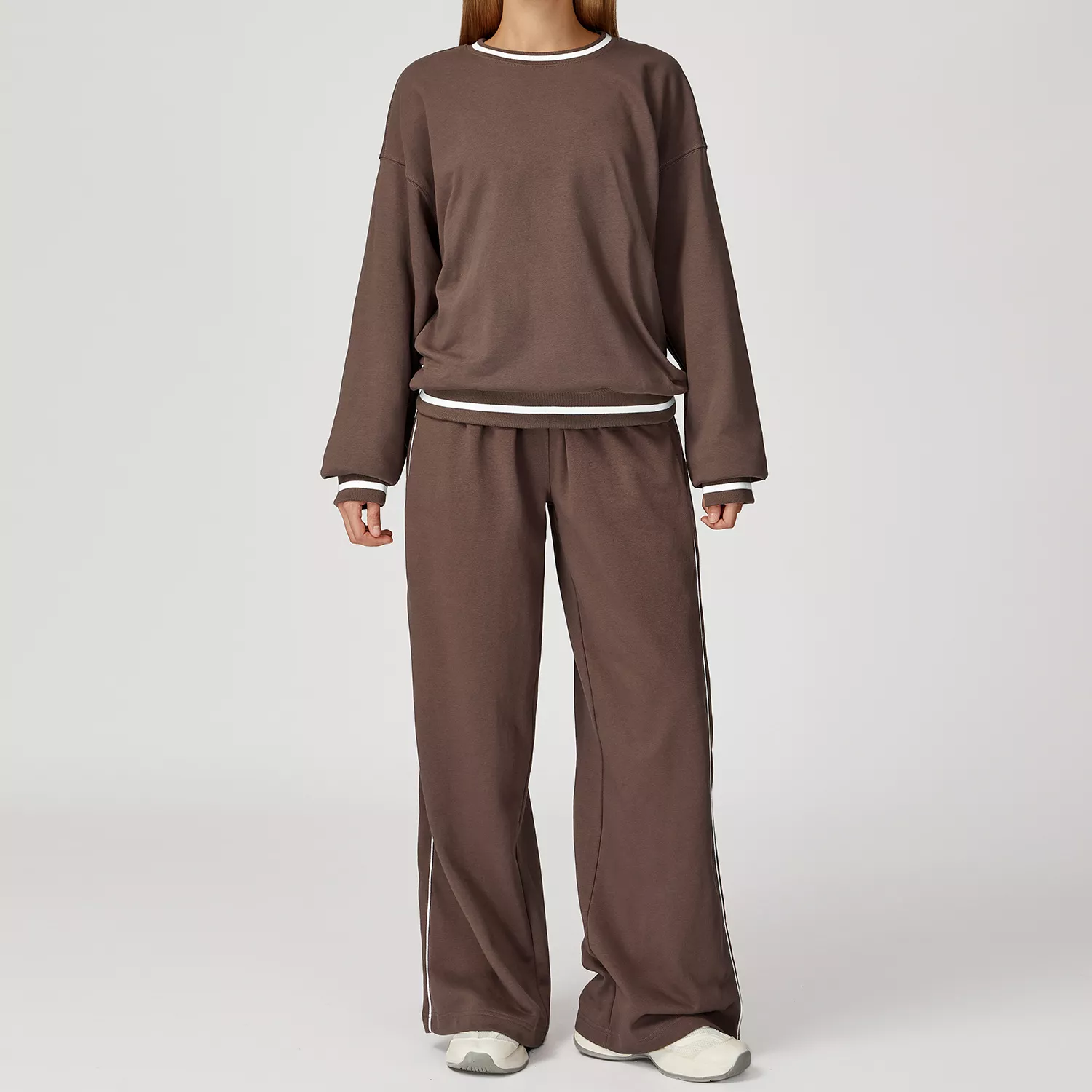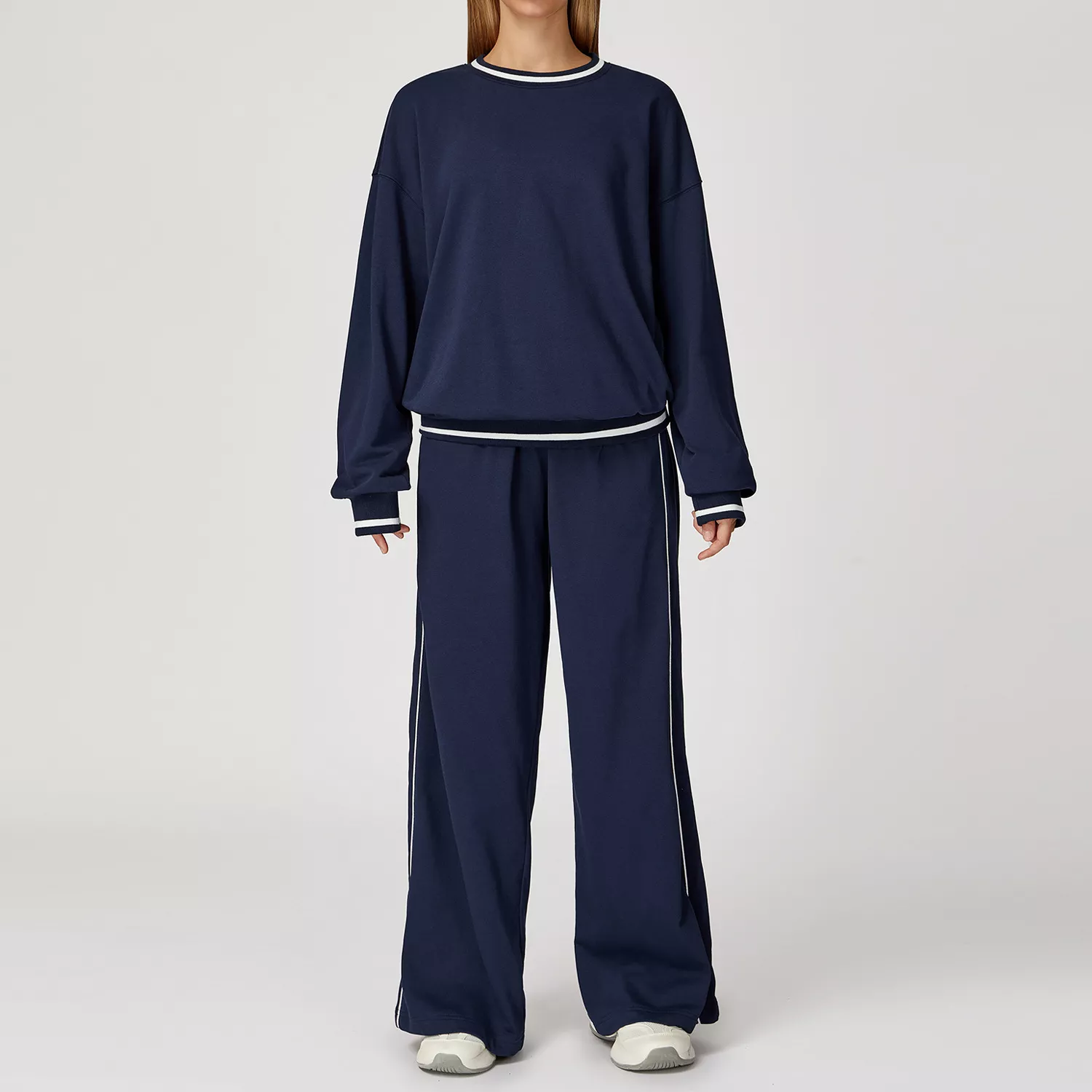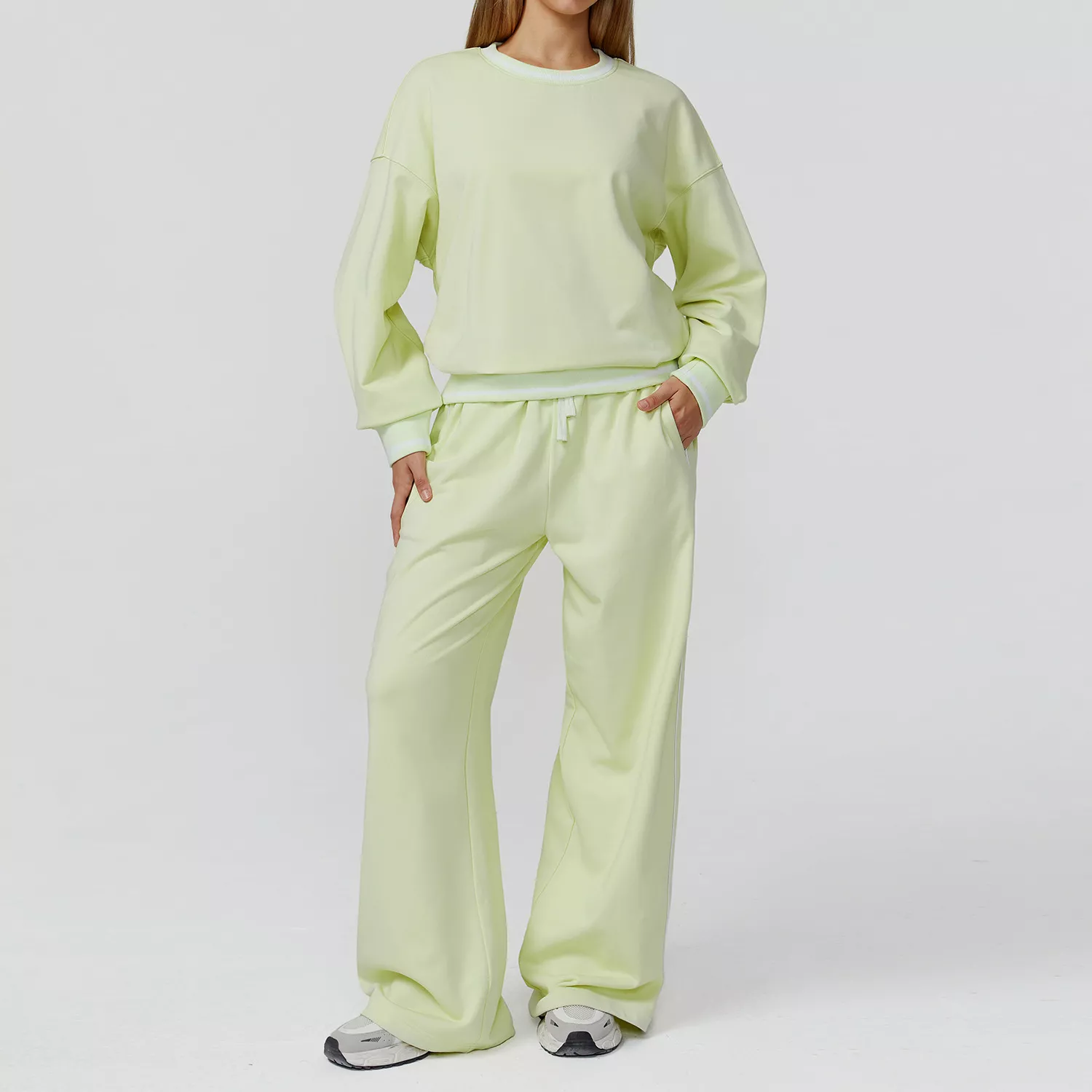 Crafted with soft, breathable, and elastic fabric, this tracksuit ensures maximum comfort without compromising on style. The long sleeve sweatshirt offers a relaxed fit, while the high-waist yoga pants are designed to enhance your shape and stay in place during every move. With its lightweight yet durable material, this set is ideal for year-round wear.
