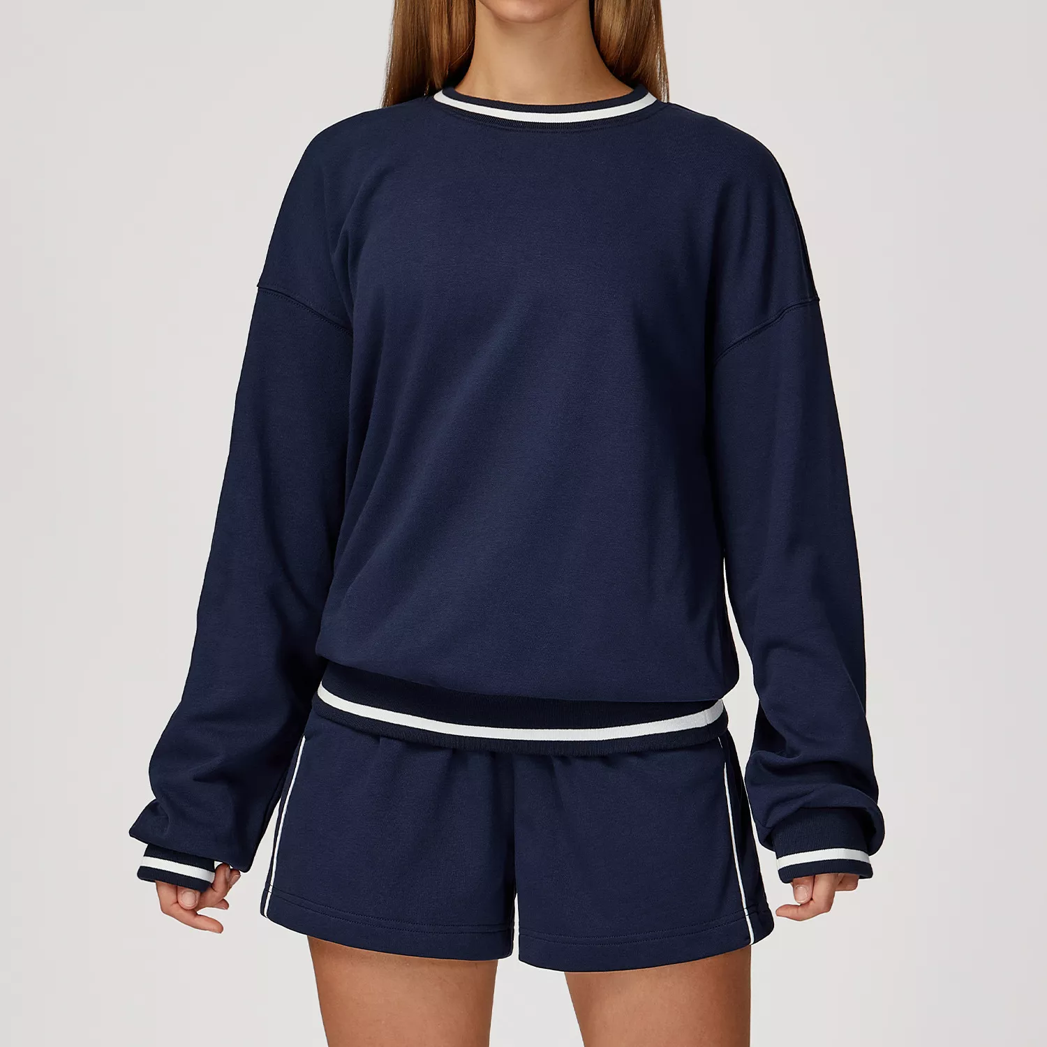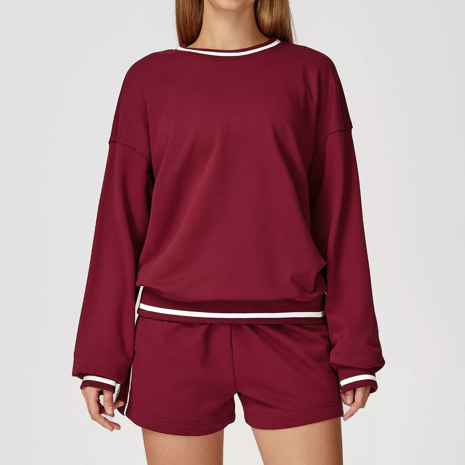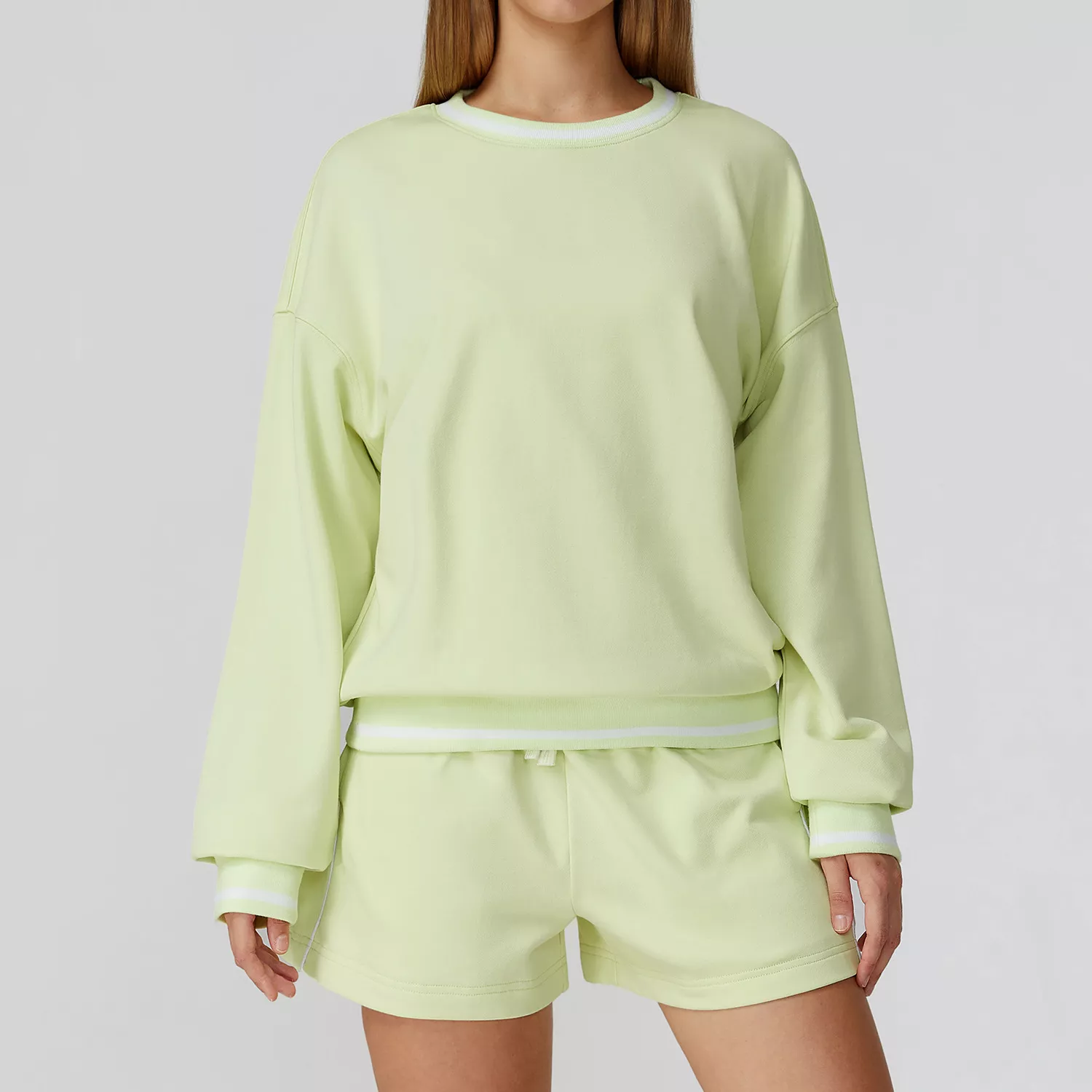 Crafted with soft, breathable, and elastic fabric, this tracksuit ensures maximum comfort without compromising on style. The long sleeve sweatshirt offers a relaxed fit, while the high-waist yoga pants are designed to enhance your shape and stay in place during every move. With its lightweight yet durable material, this set is ideal for year-round wear.