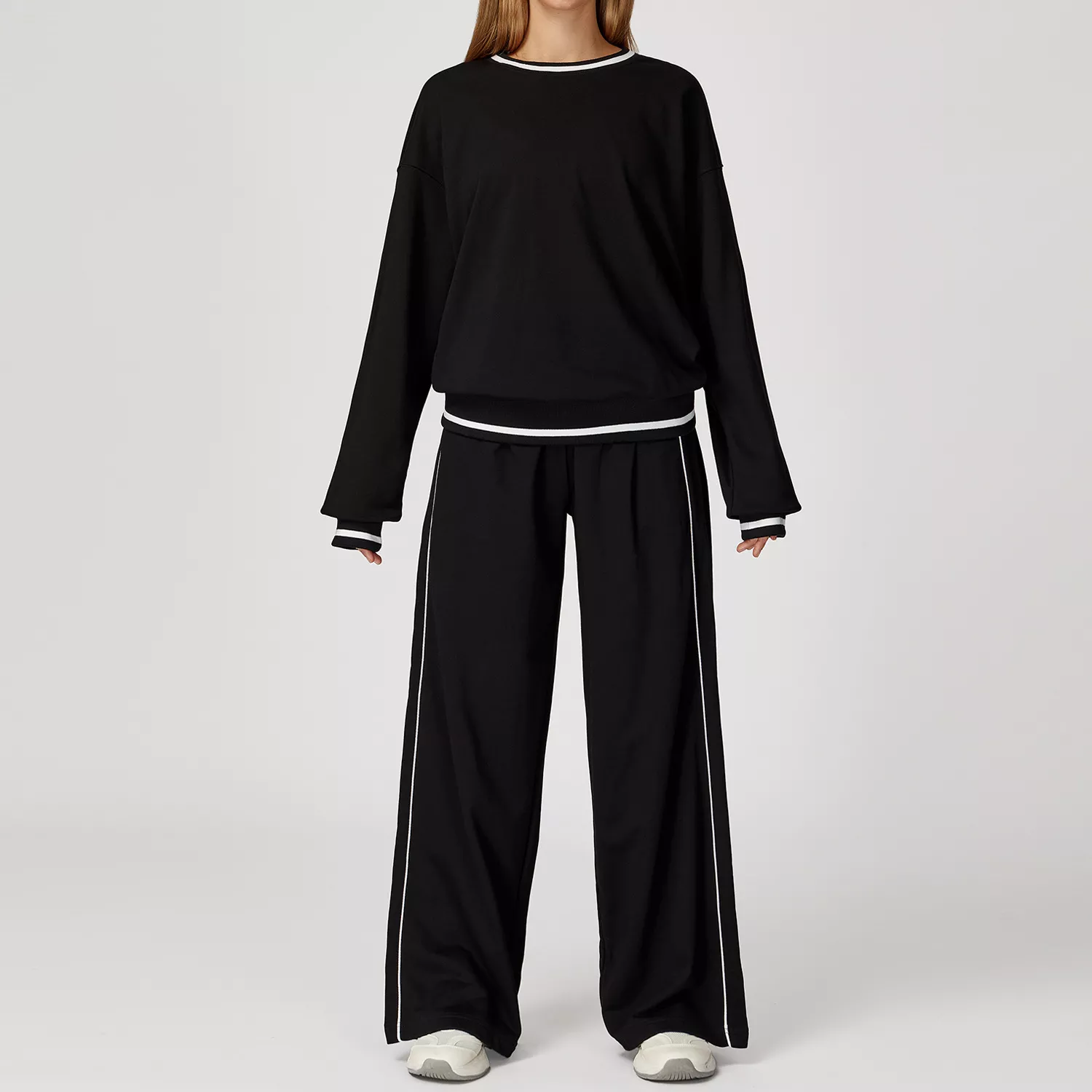 • 2-piece set: Long sleeve sweatshirt and matching high-waist pants