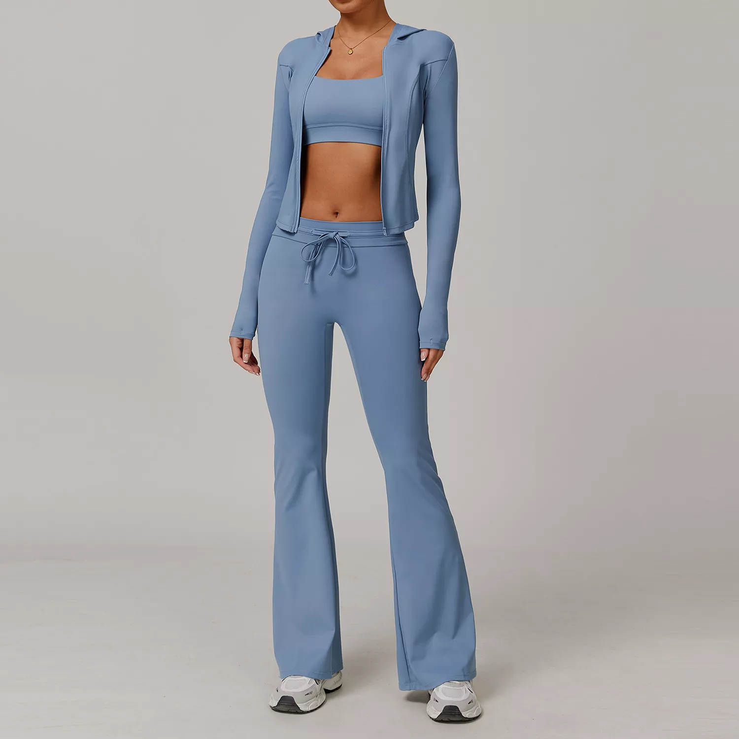 Step into your workout with confidence and style in this women’s 3 piece yoga set. Designed for women who love to move, this sleek sportswear set combines function, comfort, and fashion in one perfect package. Whether you’re stretching through yoga poses, crushing your gym routine, or running outdoors, this outfit keeps you supported and cool through every move. Made from a premium nylon and spandex blend, it hugs your curves without restricting your flexibility. You’ll love how the fabric feels — smooth, breathable, and ultra-soft against your skin.
