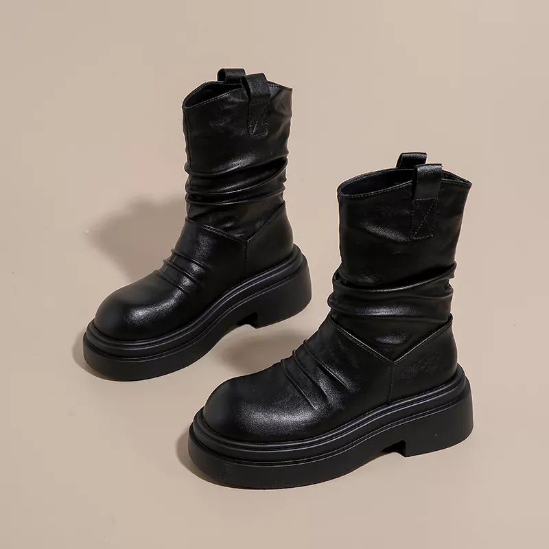 Step confidently into the season with boots that keep you stylish, comfortable, and ready for anything. Add these pleated ankle boots to your collection today and discover how effortlessly they elevate your everyday looks.