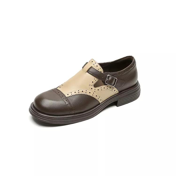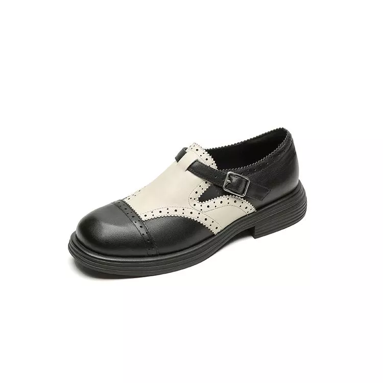 Women’s Genuine Leather Loafers with Buckle Strap Chunky Heel Pumps