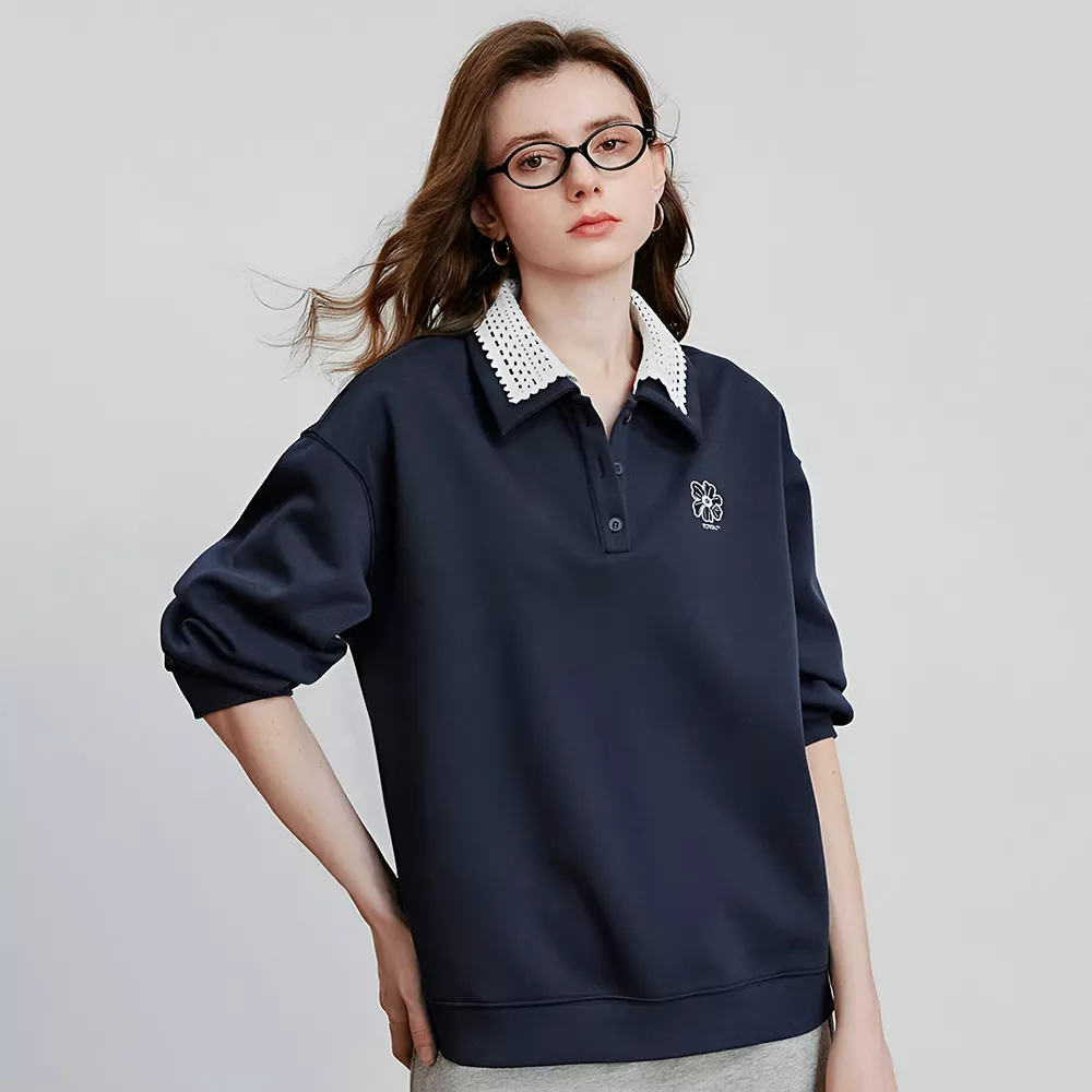 Designed with a double-layer turn-down collar and relaxed drop-shoulder sleeves, this pullover offers a contemporary edge. Crafted from a soft cotton-polyester blend, it delivers a cozy feel with just the right amount of stretch. The regular fit and standard thickness make it ideal for fall weather — not too heavy, not too light. The absence of a hood keeps the silhouette sleek and clean, making it easy to pair with jackets or scarves.