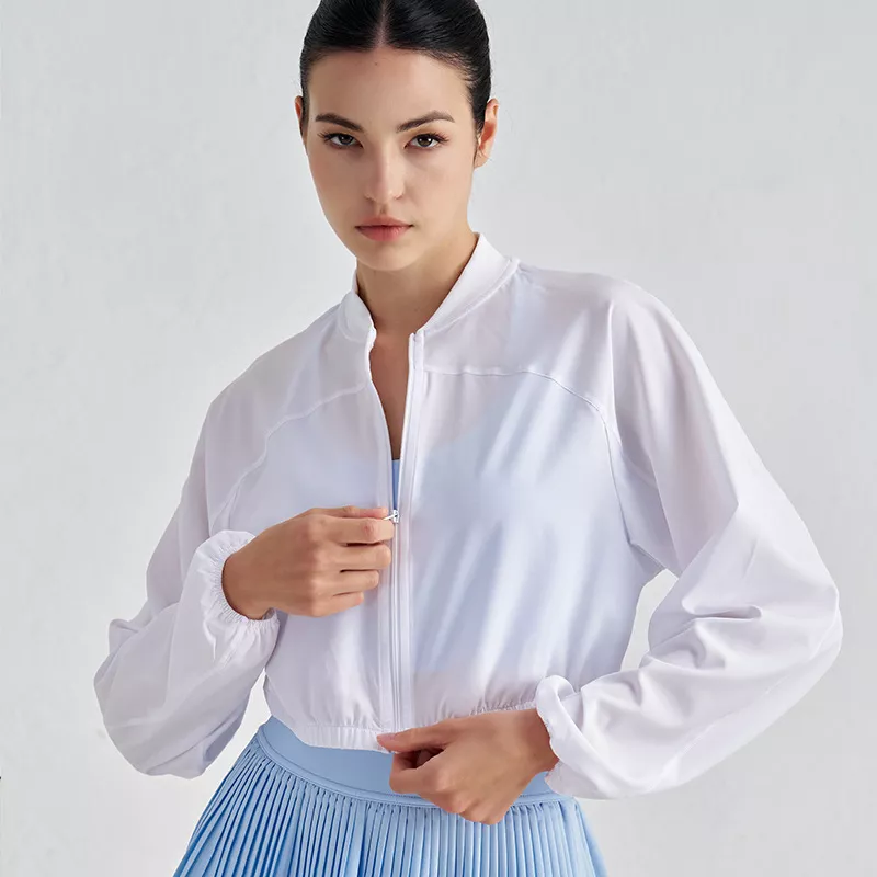 This jacket features a full-length zipper for easy wear and ventilation, along with a removable chest pad that provides customizable support and comfort. The slim yet slightly loose fit flatters every body type, while the shockproof and breathable design ensures maximum comfort during high-intensity sessions. Perfect for layering, it’s ideal for all seasons—whether you’re cooling down after a run or heading out for a brisk morning walk.